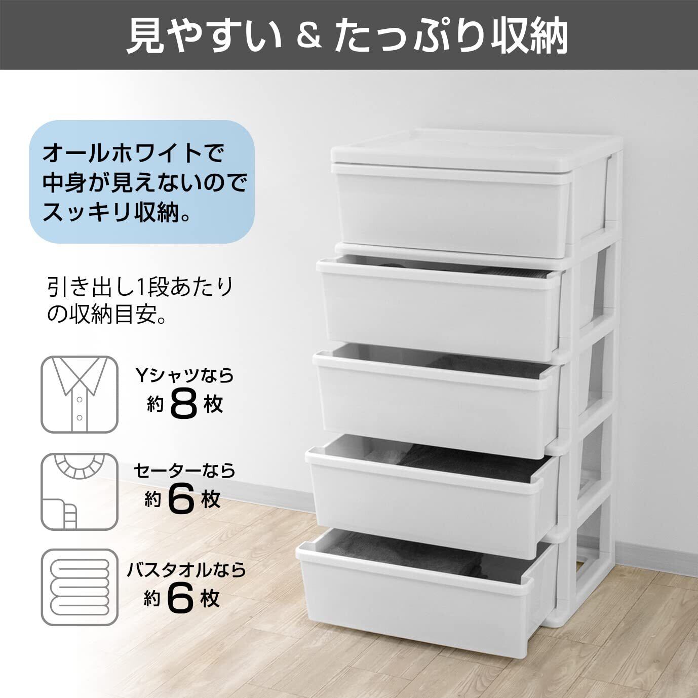 【2022最新】【 限定】ジェーイージェーアステージ JEJアステージ 収納チェスト シーズワイド 5段 ホワイト/ホワイト 日本製 簡単組み立て 幅54.0×奥行40.0×高さ103.5cm | lcsshop