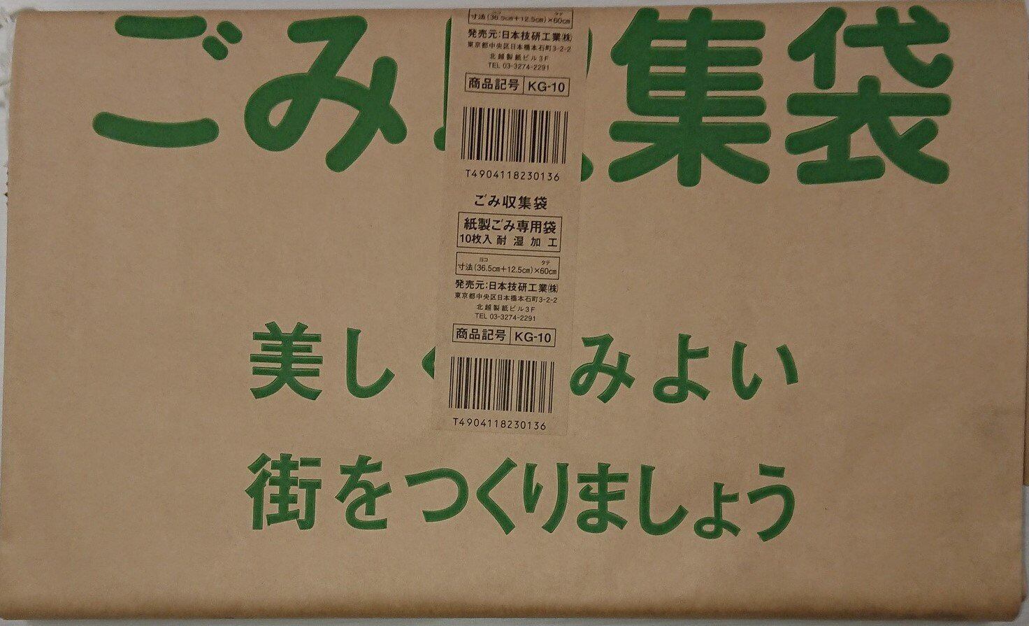 日本技研工業 日本製 紙製 ゴミ 専用 袋 ブラウン 幅36.5×マチ12.5×高さ60cm ごみ収集袋 ゴミ袋 耐湿加工 ヒモ付き KG-10 10枚入