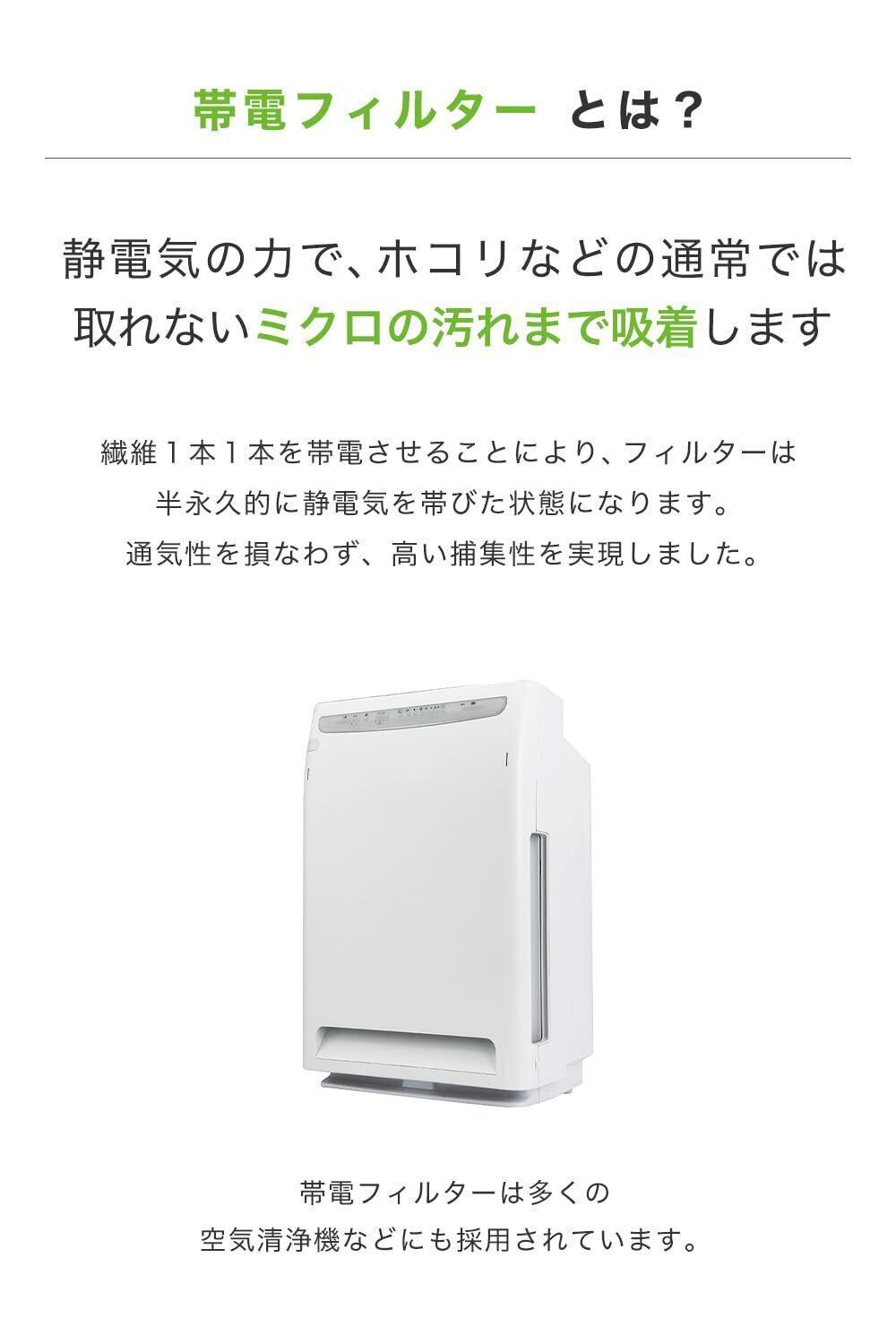 【2層構造】さらに帯電フィルターが静電気のチカラで通常では取れないホコリや細かなチリまで捕集します。通気性を損なわずに高い捕集性を実現します。