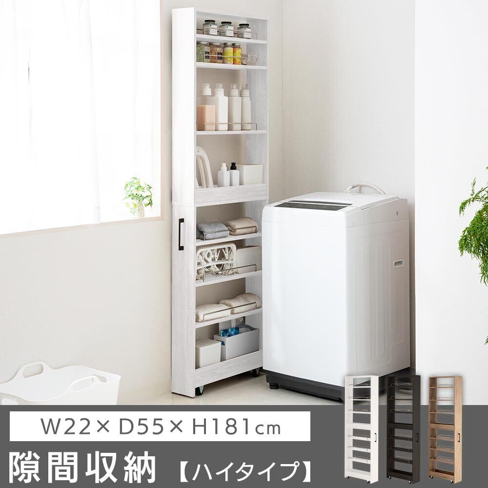 アイリスプラザ 『選べる54種』 隙間収納ハイタイプ 【高さ181cm×幅22cm】スリムラック ストッカー 調味料ラック 冷蔵庫横 洗濯機横 ライトナチュラル キッチンワゴン 幅22cm FRM-016-IR