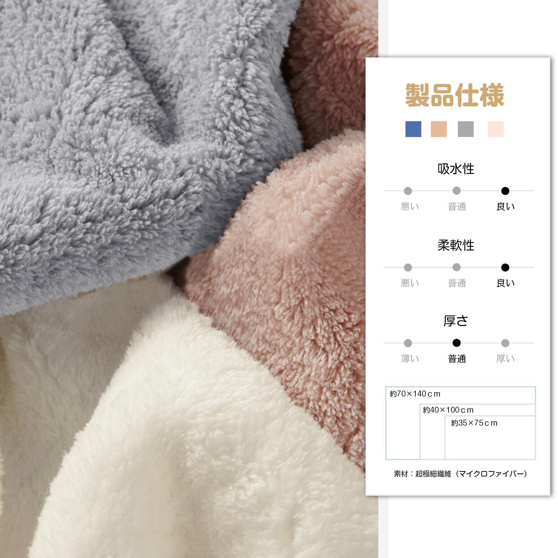 【優れた吸水性と速乾性】綿素材より優れた吸水性と速乾性。 マイクロファイバー素材の表面には無数の隙間があり、その隙間に大量の水を素早く吸収します。 髪や肌を軽く拭くだけで水分を吸収し、ホコリがつきにくいです。 バスタオルの隙間により、隙間に溜まった水分を空気が素早く拡散させるので、乾燥が早く、無菌で衛生的な状態を保つことができます。 梅雨や湿気の多い季節でも清潔を保ちます。 乾きにくい洗濯物にも快適にお使いいただけます。 室内干しも可能です。