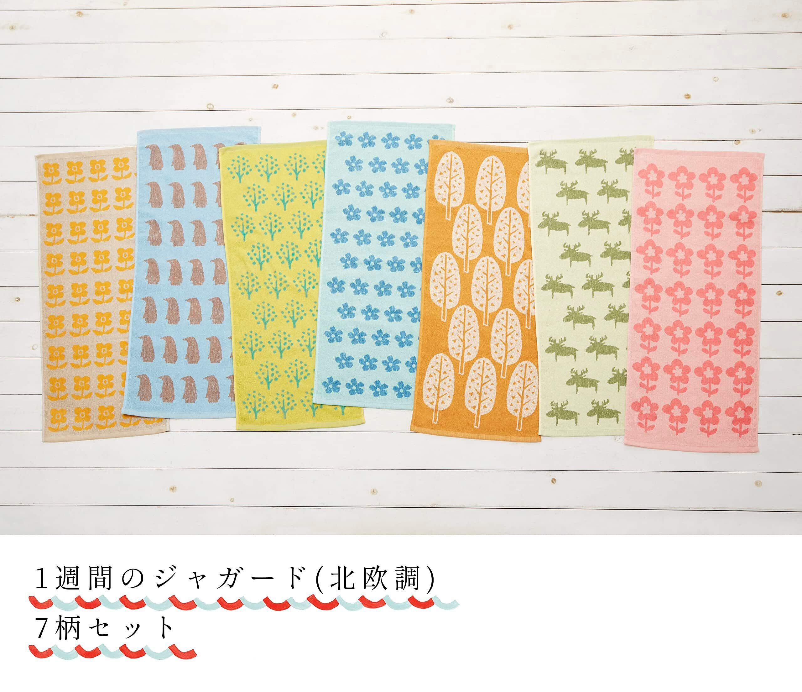 【数量限定】Kosugizen フェイスタオル 1週間のジャガード 北欧調 7色(7柄)各1枚入 34×80㎝ 北欧風モチーフ 1週間まいち使い分け 7枚セット SV-2318-7 | lcsshop