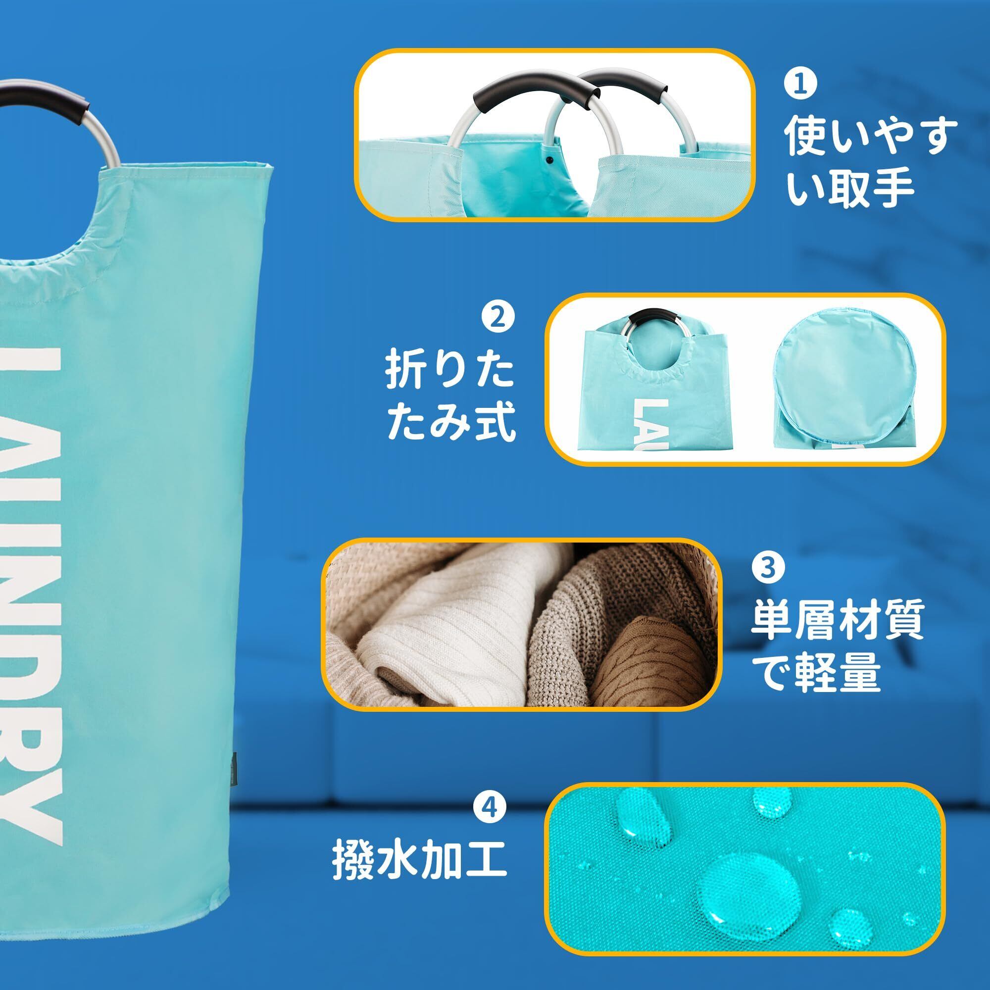 【収納簡単・持ち運び便利】使用しない時は、折りたためる洗濯かごをコンパクトに収納できます。アルミハンドルには軟らかいEVA素材を塗りつけたので、重量物に対応できるだけではなく、使用中はお手も快適にします。