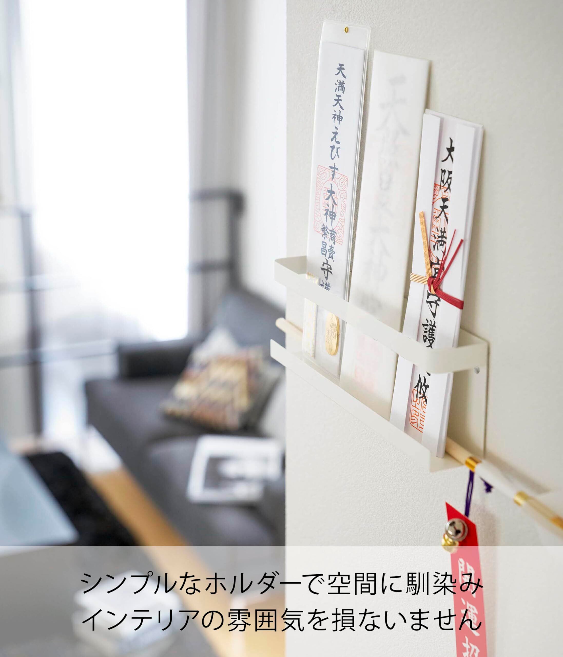 山崎実業(Yamazaki) 【 石こうボード用プッシュピン・木ネジ 付属 】 神札ホルダー ホワイト 約W25×D4×H8cm タワー tower 簡易神棚 お札立て 破魔矢収納 5024