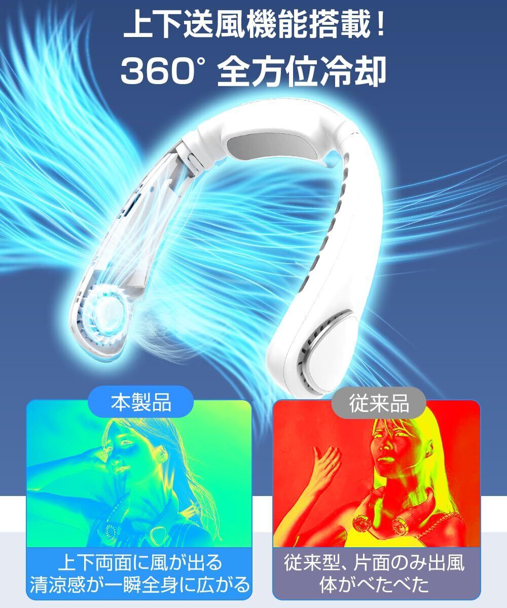 首掛け扇風機 冷却ファン 【2025新型・瞬間冷感・360°上下送風】 軽量 小型 Type-C 急速充電 ネッククーラー 羽なし 静音 3段階風量調節 大容量バッテリー 長時間連続使用 持ち運び便利 扇風機 おしゃれ 携帯扇風機 コンパクト 花火大会/通勤通学/アウトドア/熱中症対策/プレゼント