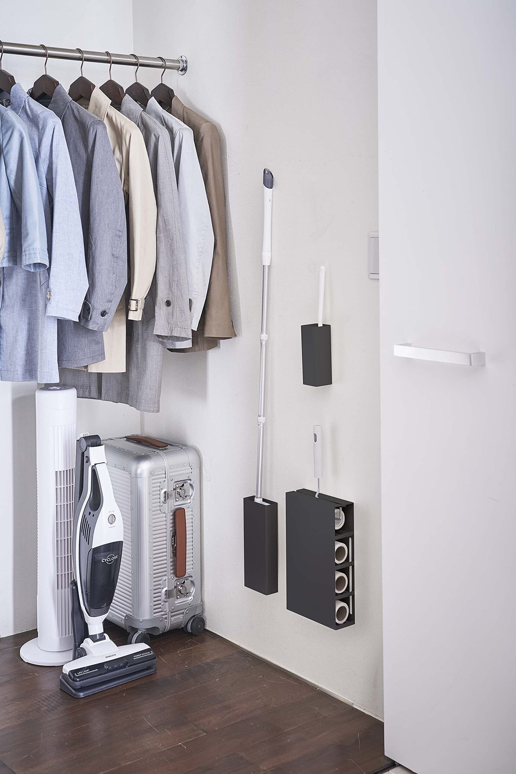 山崎実業(Yamazaki) マグネット フローリングワイパースタンド ブラック 約11X5X26cm タワー 浮かせて収納 簡単取付 5388
