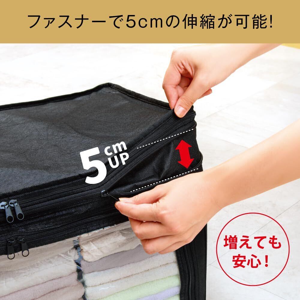 【ファスナーで高さの伸縮が可能な収納ボックス】かさばる冬物を収納する際や、詰め終わったのに入れ忘れを発見した時など、サイドにあるファスナーで高さを5cm上げることができ収納力アップ。