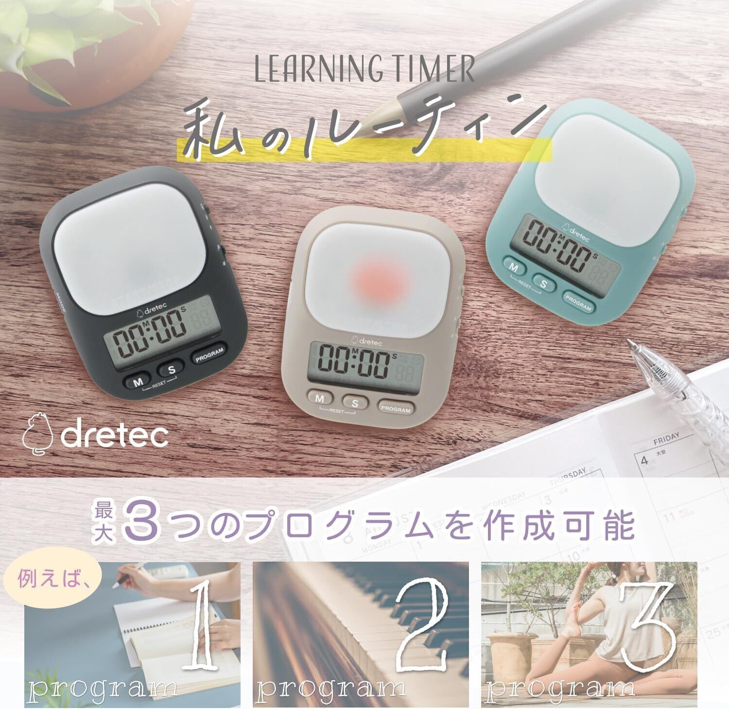 【新春セール】ドリテック(dretec) ラーニングタイマー「私のルーティン」 学習タイマー タイマー カウントダウン 消音 音量切替機能 最大199分55秒 繰り返し インターバルタイマー 勉強タイマー 時計機能 複数タイマー設定 ループ 光 ダークグレー | lcsshop