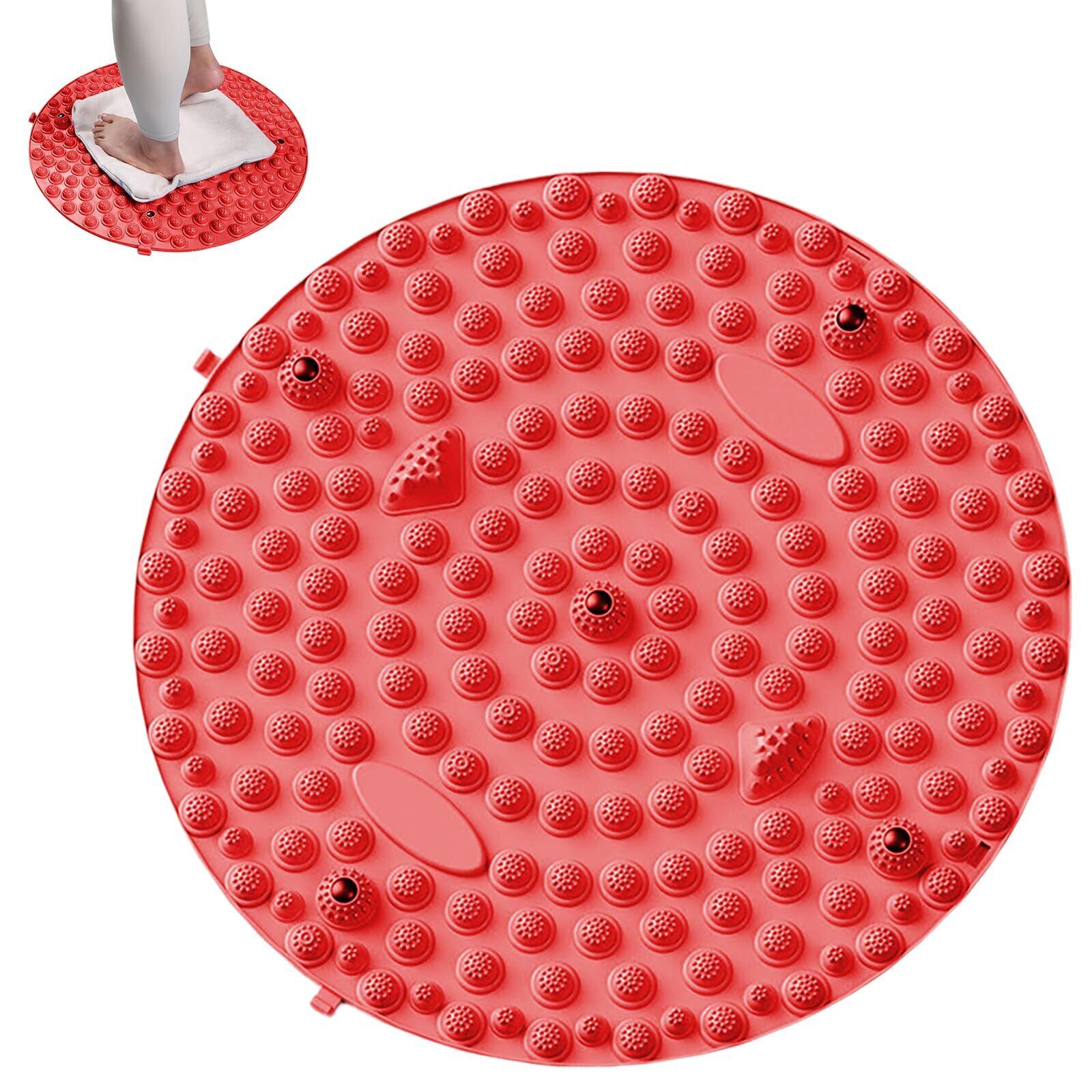 足ツボマット 円形 ソフト 足つぼマット 指圧マット 足裏マッサージ ダイエット 足ツボ押し 足ツボ マット 指圧ボード 足つぼ 人間工学 リフレクソロジー マット 滑り止め 疲労解消 (32CM-レッド)