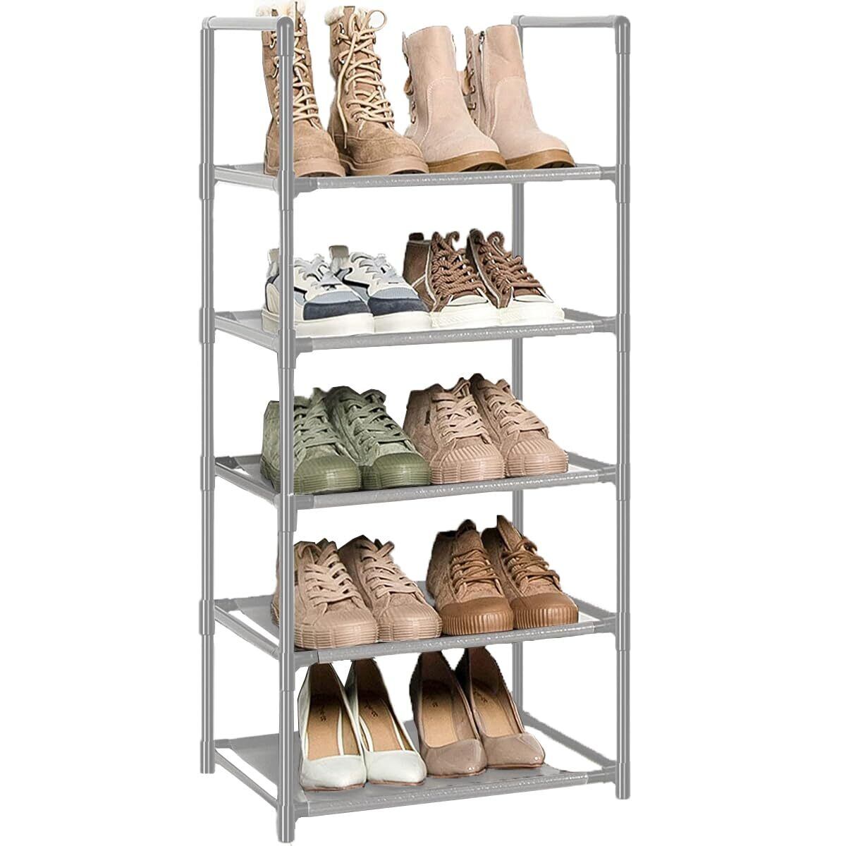 シューズラック 5段 靴収納 8-10足 靴棚 下駄箱 省スペース シューズボックス スリム 玄関に靴を効率収納 靴入れ 組み立て式 日本語説明書付き 幅約45×奥行28×高さ90cm(グレー 5段)
