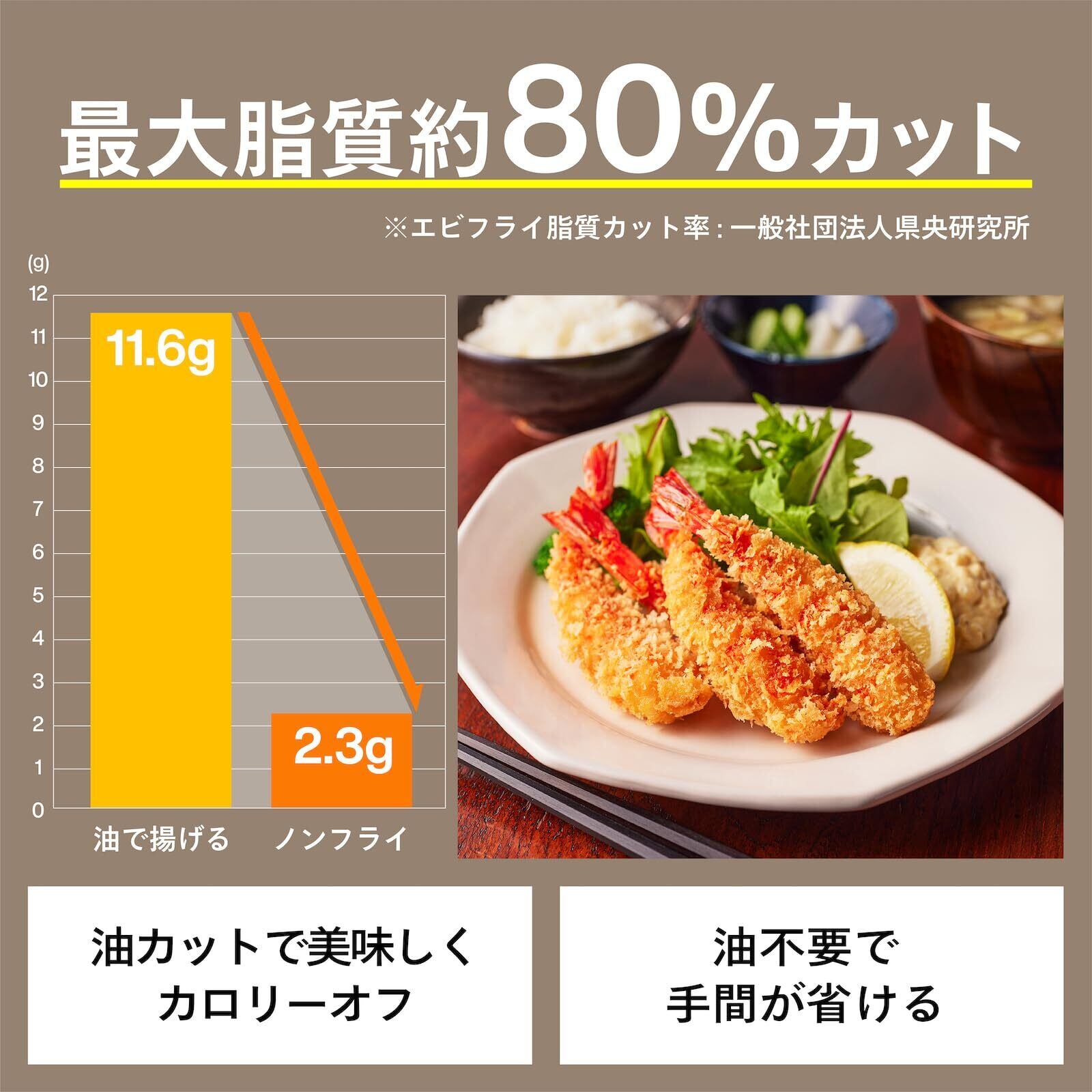 【ノンフライ料理でカロリーオフ】ファンで熱風を食材に当ててカリッと仕上げます。油を使わないからヘルシー