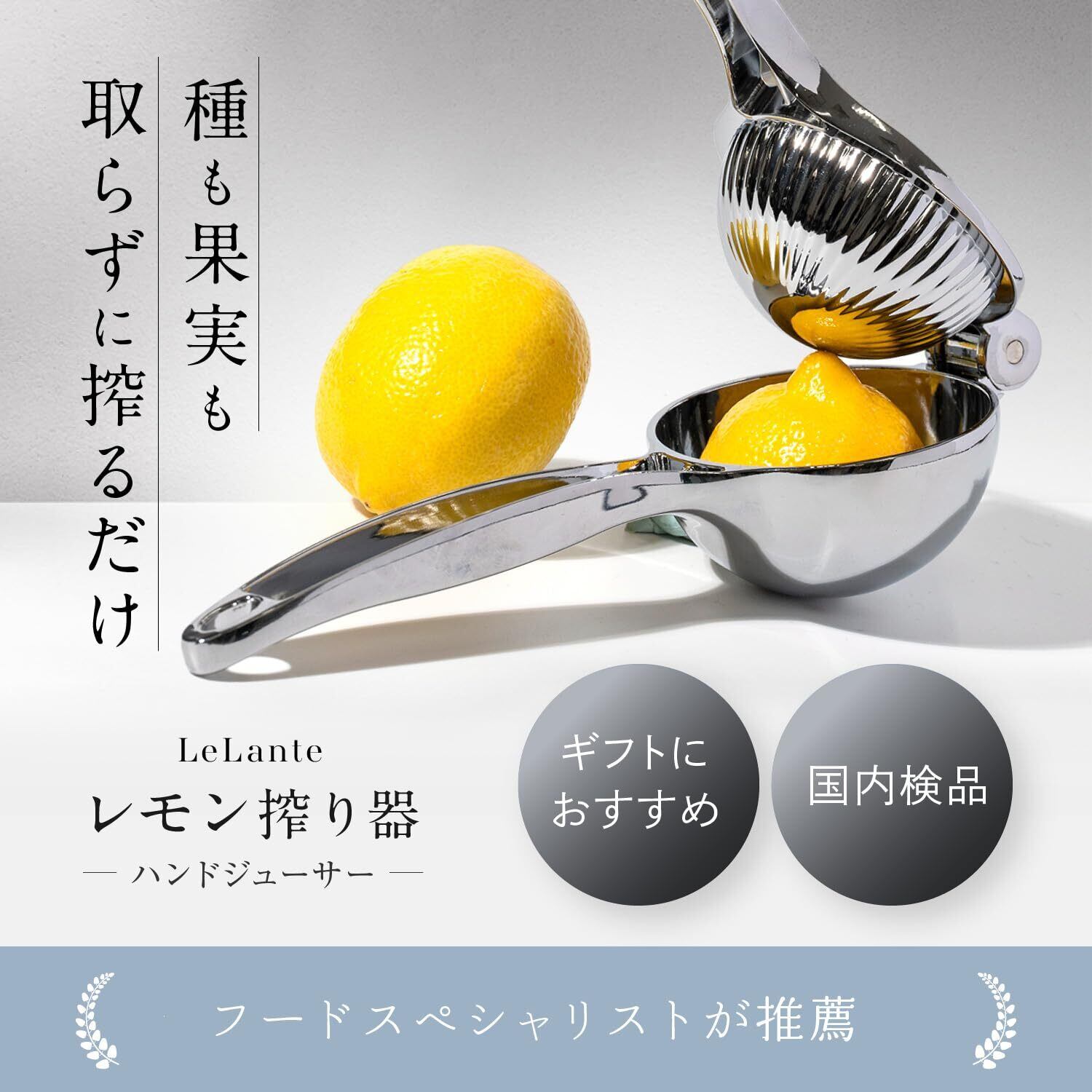 【選ばれる理由】 LeLante レモン絞り器 がついに正式販売開始。片手で簡単に レモン やライム、柑橘の 果物 などを搾れる ハンドジューサー です。搾る部分とハンドルが分かれているので手が汚れる心配もありません。フルーツをしっかり固定し、均等な汁だし穴で種を残し無駄なくキレイに搾ることができます。※滑りが悪く金属音するなどあれば、食用オイルをご利用頂けると滑りが良くなります