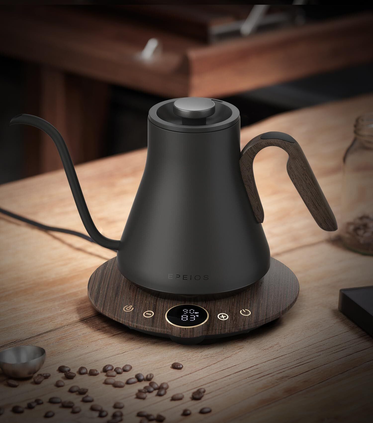 【お茶・コーヒー好きな人へのプレゼント】Epeiosの電気ケトルは0.9Lの容量で、1〜4人暮らしに最適です。コーヒー好きな方や日常使いにもおすすめです。誕生日プレゼントや引越し、結婚記念日、クリスマス、お祝い、母の日、父の日など大切なイベントでの贈り物にも最適です。ゆっくりと丁寧に注いでコーヒーの風味を引き出すことにも、赤ちゃんのミルクやお茶を淹れたりする日常使いにも活躍いたします。