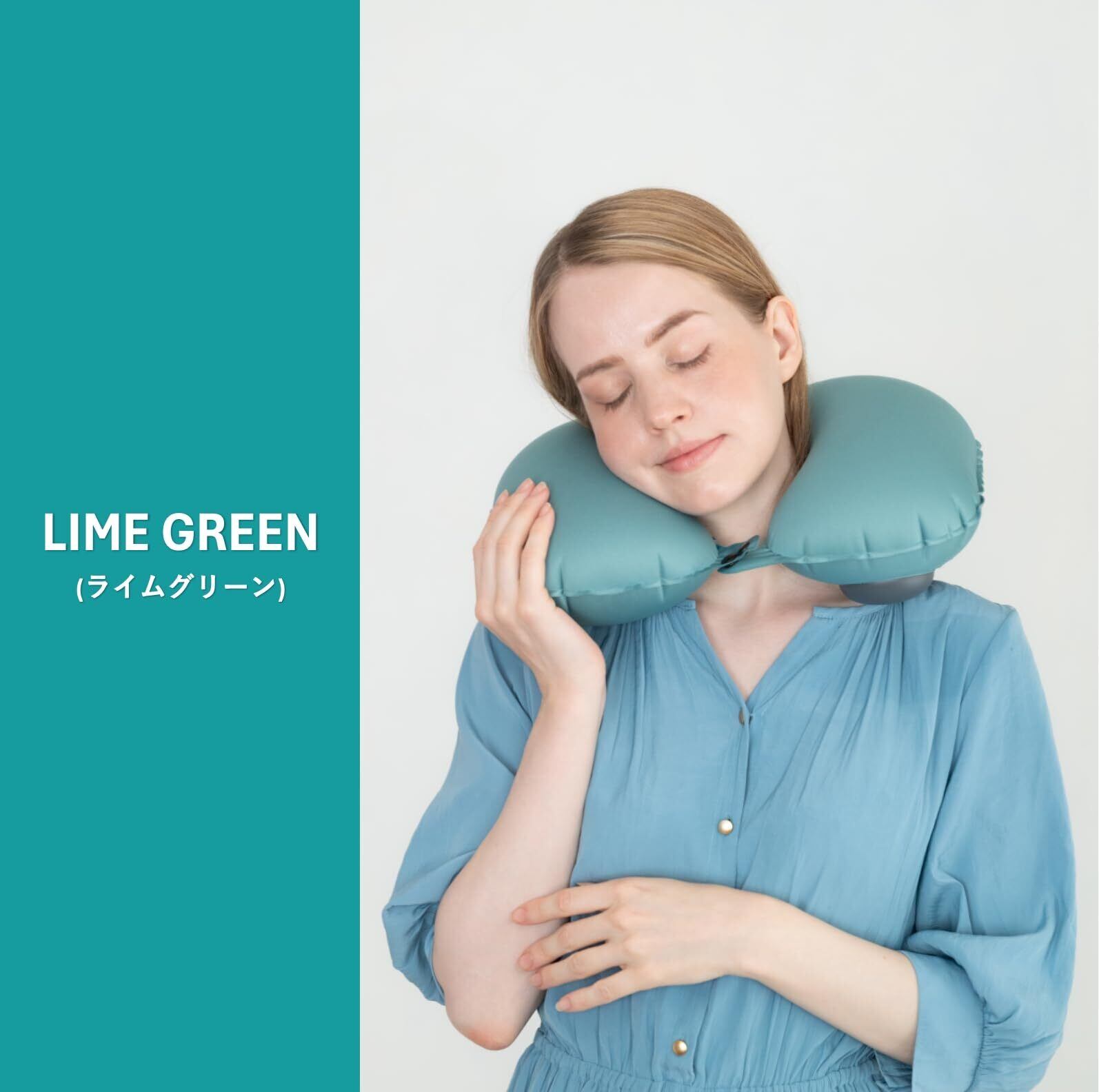 ネックピロー コンパクト【整体師×睡眠改善インストラクター監修】ポンプ式 軽量 エアー 飛行機 車 新幹線 首枕【MONOQLO ベストバイ受賞店】 neck pillow トラベルピロー 長距離 旅行 低反発 携帯枕 クッション 便利グッズ 快適グッズ (ライムグリーン)