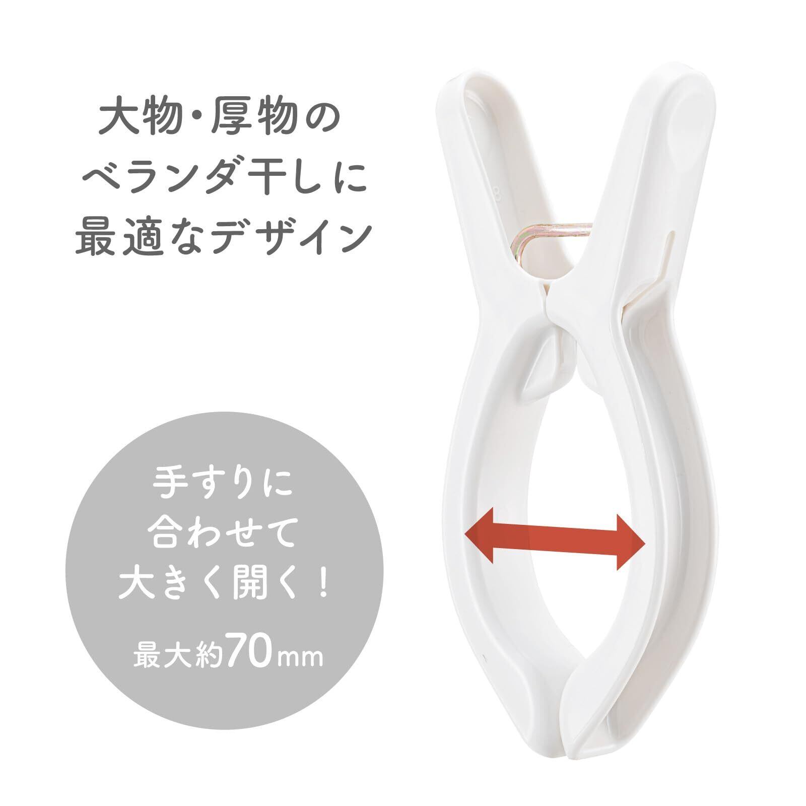 ダイヤ (Daiya) 洗濯バサミ フランドリー Flaundry ベランダピンチ 4個入り 洗濯物干し ピンチ 洗濯ピンチ 大 ホワイト 大型ピンチ 手すり 大きく開く つまみやすい ハサミ跡がつきにくい ずれ防止 横滑り 毛布 シーツ タオルケット 大物 厚手 058145