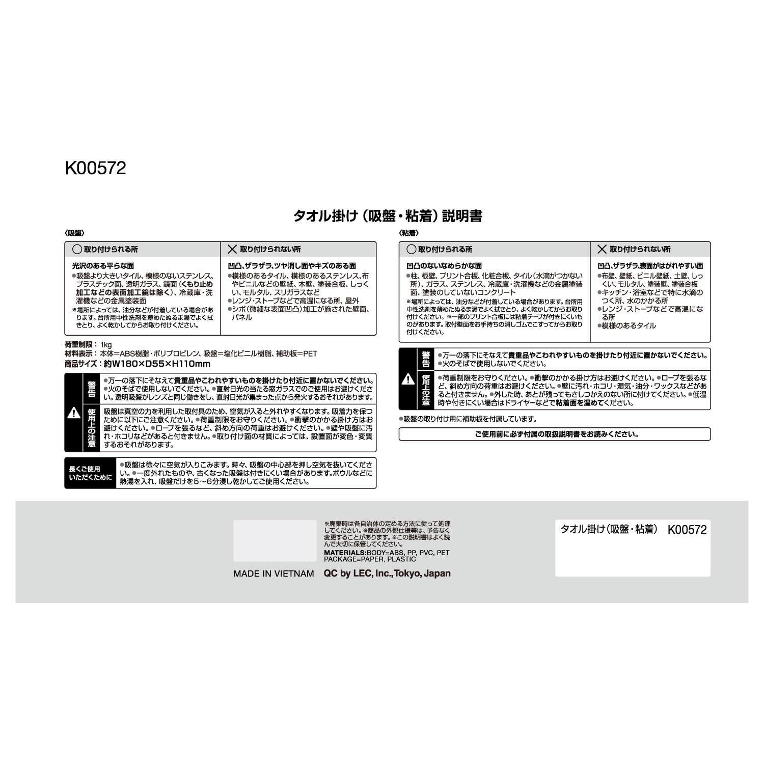 レック タオル掛け (吸盤/粘着 選べる取付け) 耐荷重1kg