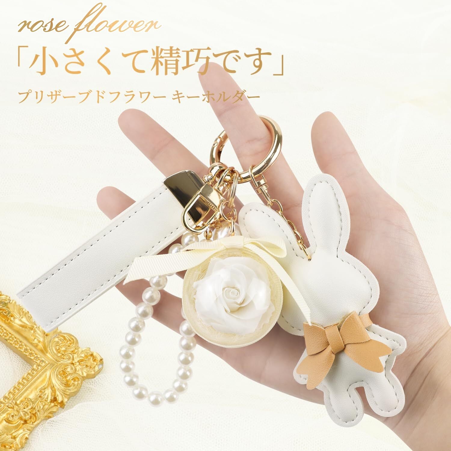 [SENJWARM] プリザーブドフラワー キーホルダー かわいいウサギのペンダント 枯れない花 女性 女友達 贈り物 彼女 妻 プレゼント 記念日 ホワイトデー バレンタインデー Valentine ひな祭り 人気 プレゼント 誕生日 女の人 還暦祝い 退職祝い 引越し祝い 入学 卒業 敬老の日 ギフト(白)