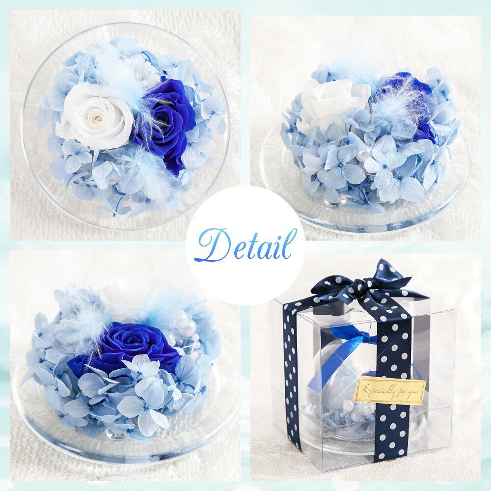 ティートサイト プリザーブドフラワー フラワーアレンジ ラッピング済み ガラスポット入り 2輪 (バラ 白×青)