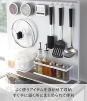 別売のマグネット収納ツールを好きな位置に取り付けて、自分だけのオリジナル収納をつくれます。