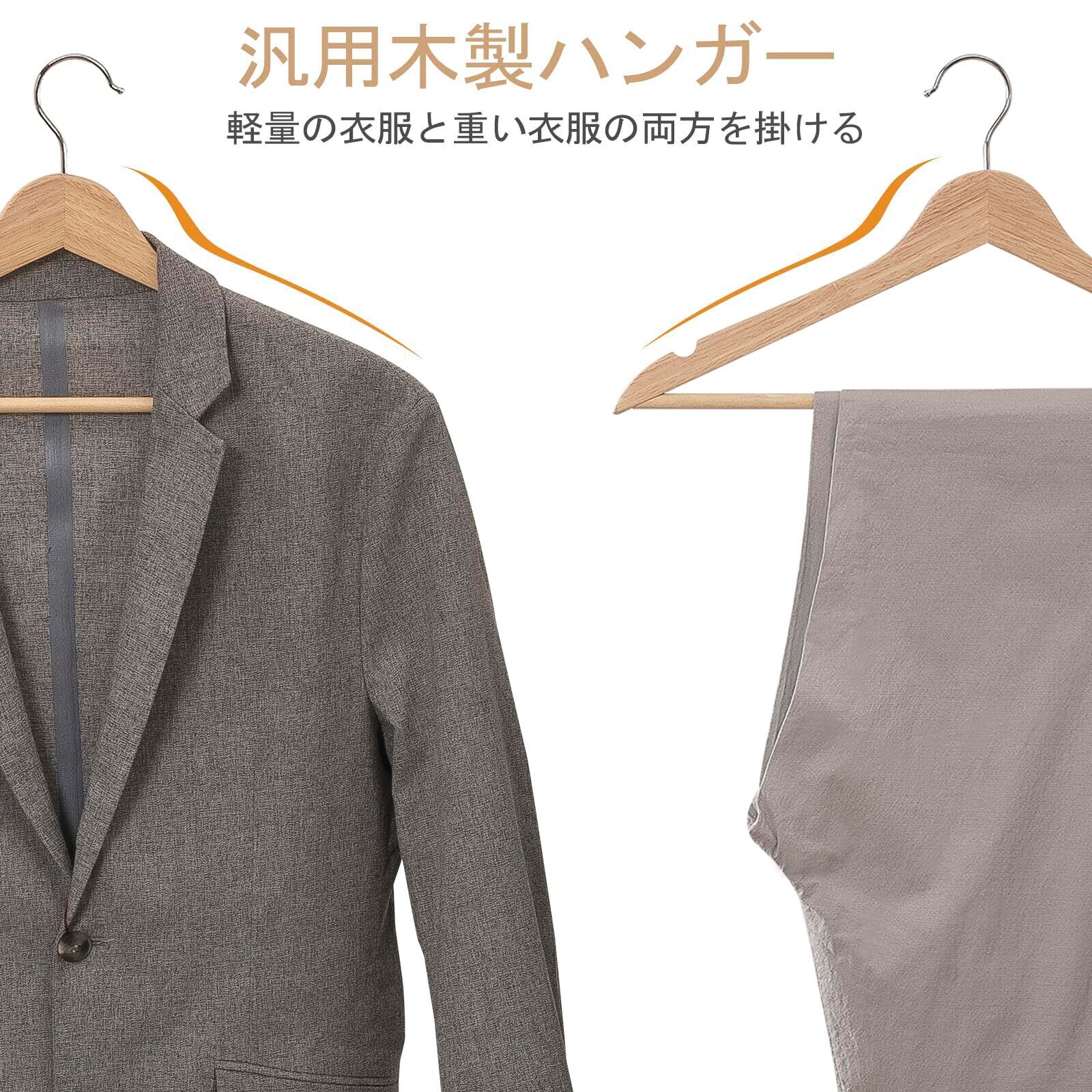 【手作業で丁寧な仕上げ】手作りの洋服ハンガー 木製、滑らかな表面が衣服をひっかかりから保護し、丈夫な構造は、重厚な衣服にもお使いいただけます。ハンガー ジャケット用は肩に滑り止め凹み付き、キャミソールが滑らないようにできます。
