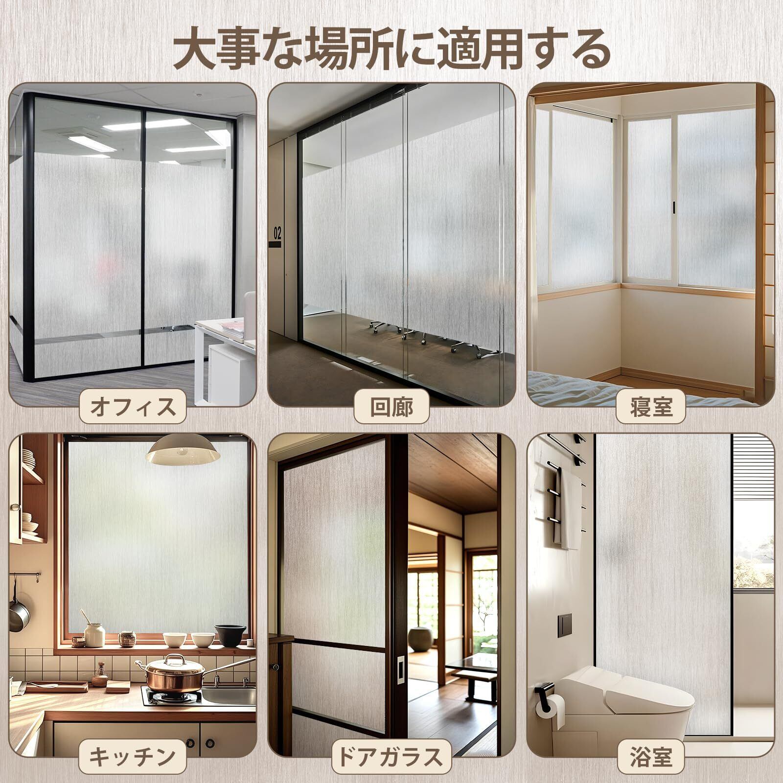 【貼り付け簡単・残り物なし・賃貸最適】こちらのすりガラスシートは静電気吸着なので接着剤がいりません。何度でも貼り直せ、初心者でも簡単にできます。はがしても残留物もなし、再利用も可能です。レンタルオフィスに最適です。(ほとんどの接着剤に人間の体に有害な化学物質が入っています)