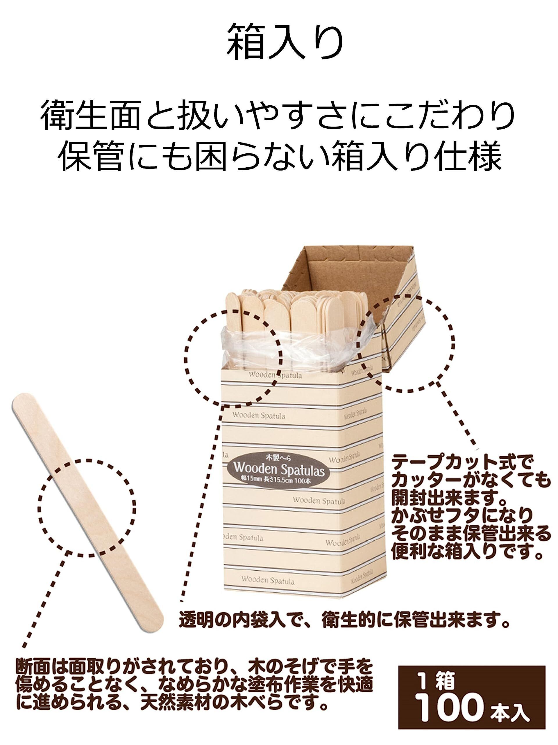 サンナップ 使い捨て スパチュラ ブラウン Lサイズ 横1.5cm×縦15cm×厚み0.15cm 木製 ヘラ BOXタイプ 100本入