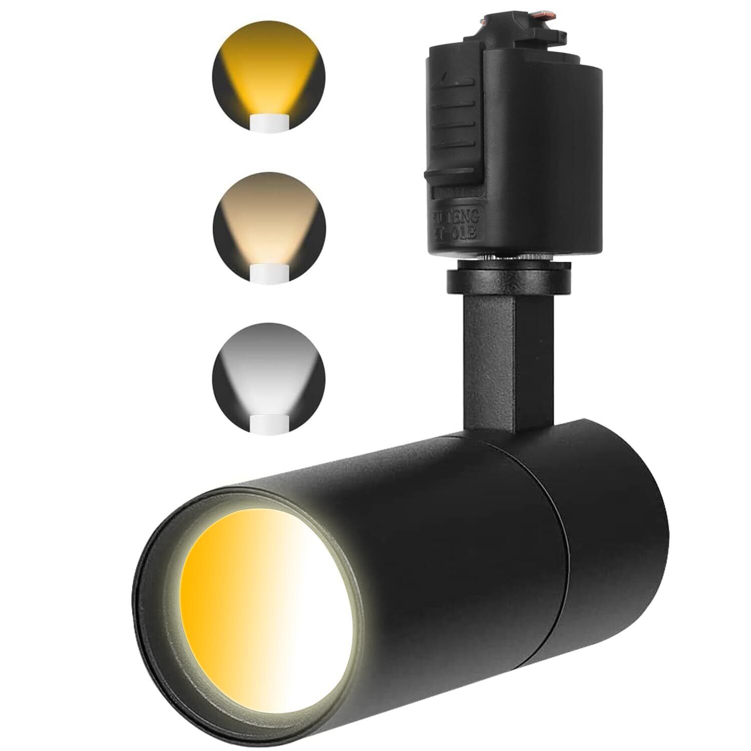 【製品仕様】一体型 レール用スポットライト;消費電力:10W、 白熱電球100W形相当;全光束:1000LM;寸法:直径48mmx高さ120mm;入力電圧:AC85-265V 50/60Hz;色温:電球色& 昼光色 &昼白色(3000K-4500K-6000K);演色性:Ra98;ビーム角度:36° ;材質: アルミニウム、PC;パッケージ:ブラック 1個セット;調光可能:はい;リモコン:いいえ ;使用環境温度:-20℃~+40℃/使用環境湿度:75%以下。