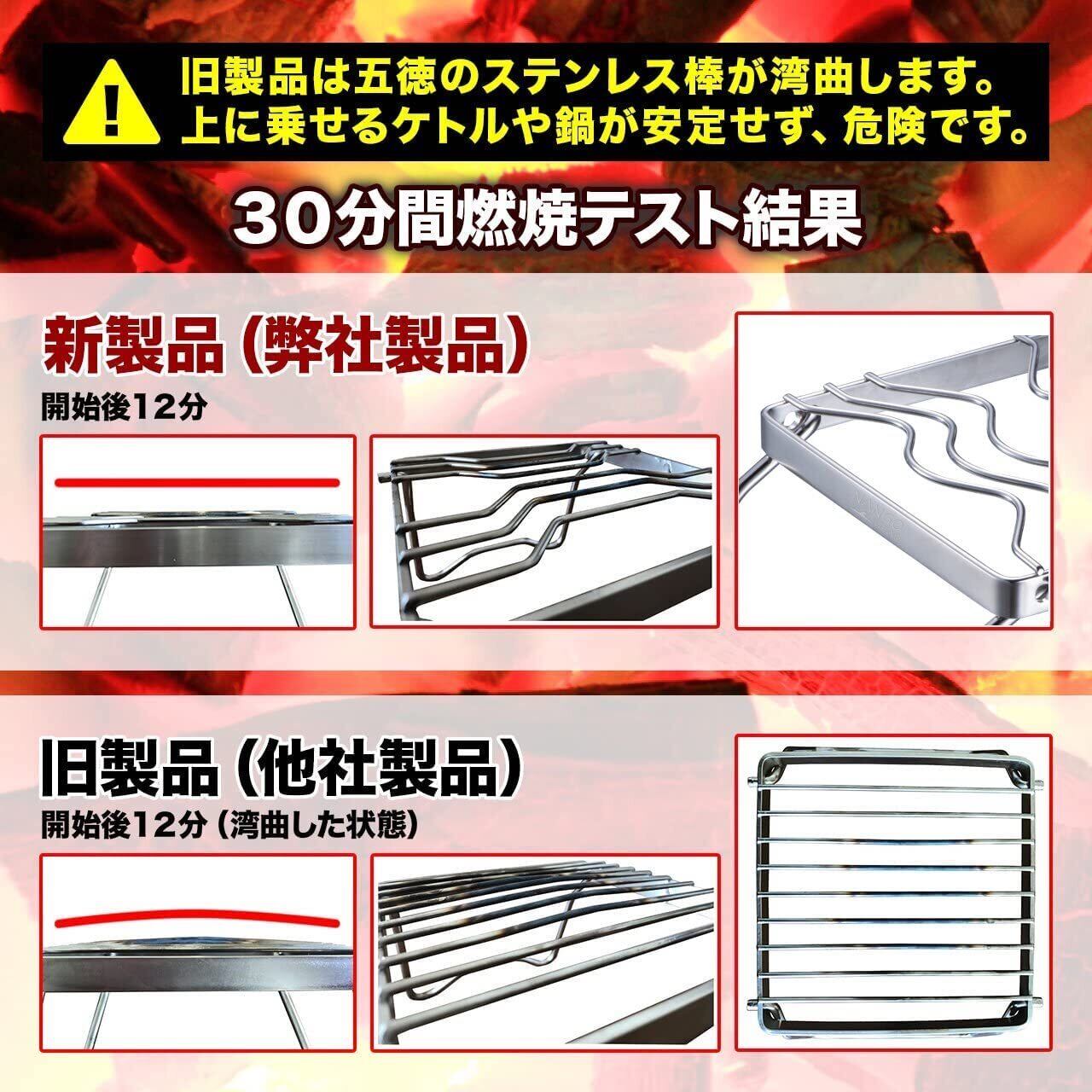 【サイズ】五徳部分:16cm×16cm; 高さ:11.5〜13.5cm2段階調整; 収納時サイズ:約16.2×16×3(厚さ)cm