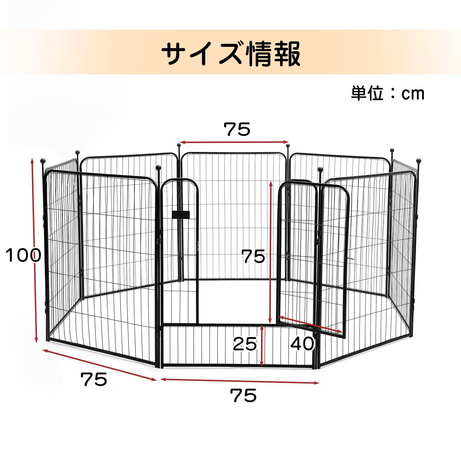【数量限定】PETTOM 犬 サークル ペットフェンス ペットケージ 犬 ゲージ 中大型犬用 スチール製 コンパクト 8枚組 高さ80cm 高さ100cm 室内外兼用 折り畳み式 組立簡単 軽量 持ち運び便利 (高さ100cm-八枚) | lcsshop