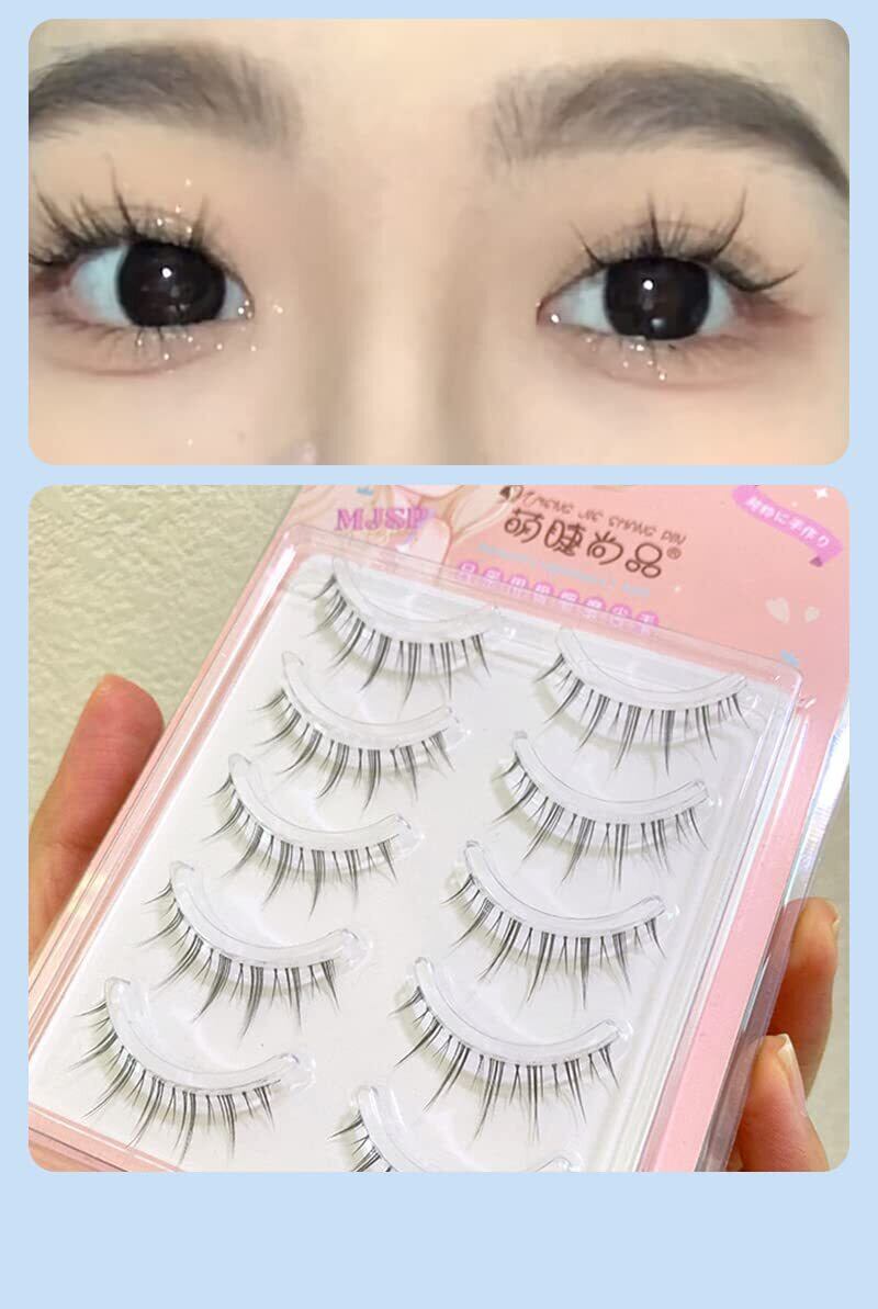 つけまつげ ナチュラル 5ペア 人気 透明軸 芯が柔らか 超軽量 柔らかく 手作り 女優まつげ コスプレメイク つけまつげ (K-10)