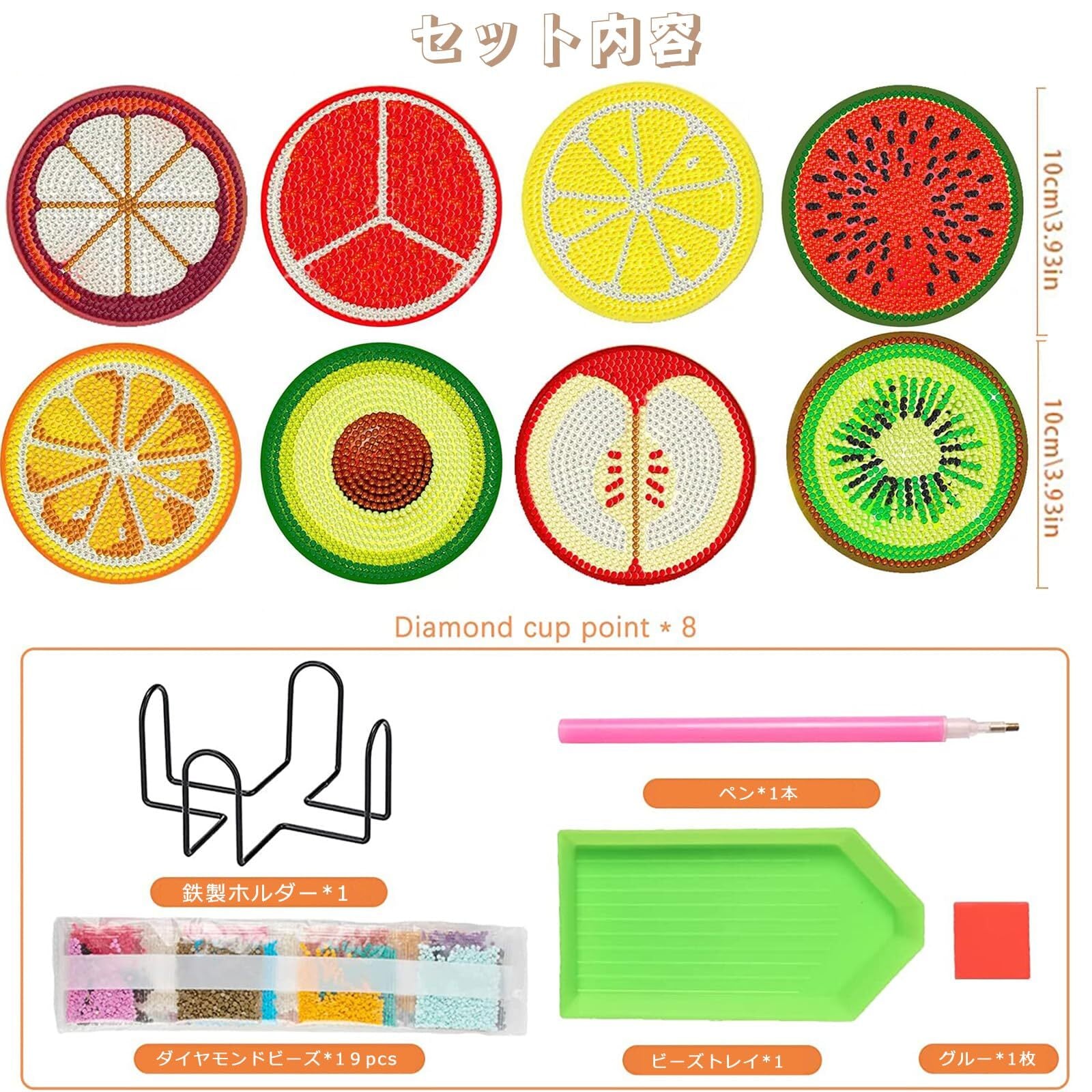 Sitengle ダイヤモンドアート コースター キット8個入 ビーズアート ダイアモンドアート セット DIYダイヤモンドペインティング 5Dダイヤモンド塗装キット ホルダー付き コースター 手芸キット 初心者、大人、子供用 人気 手作り アートクラフト用品 (8個セット 果物)