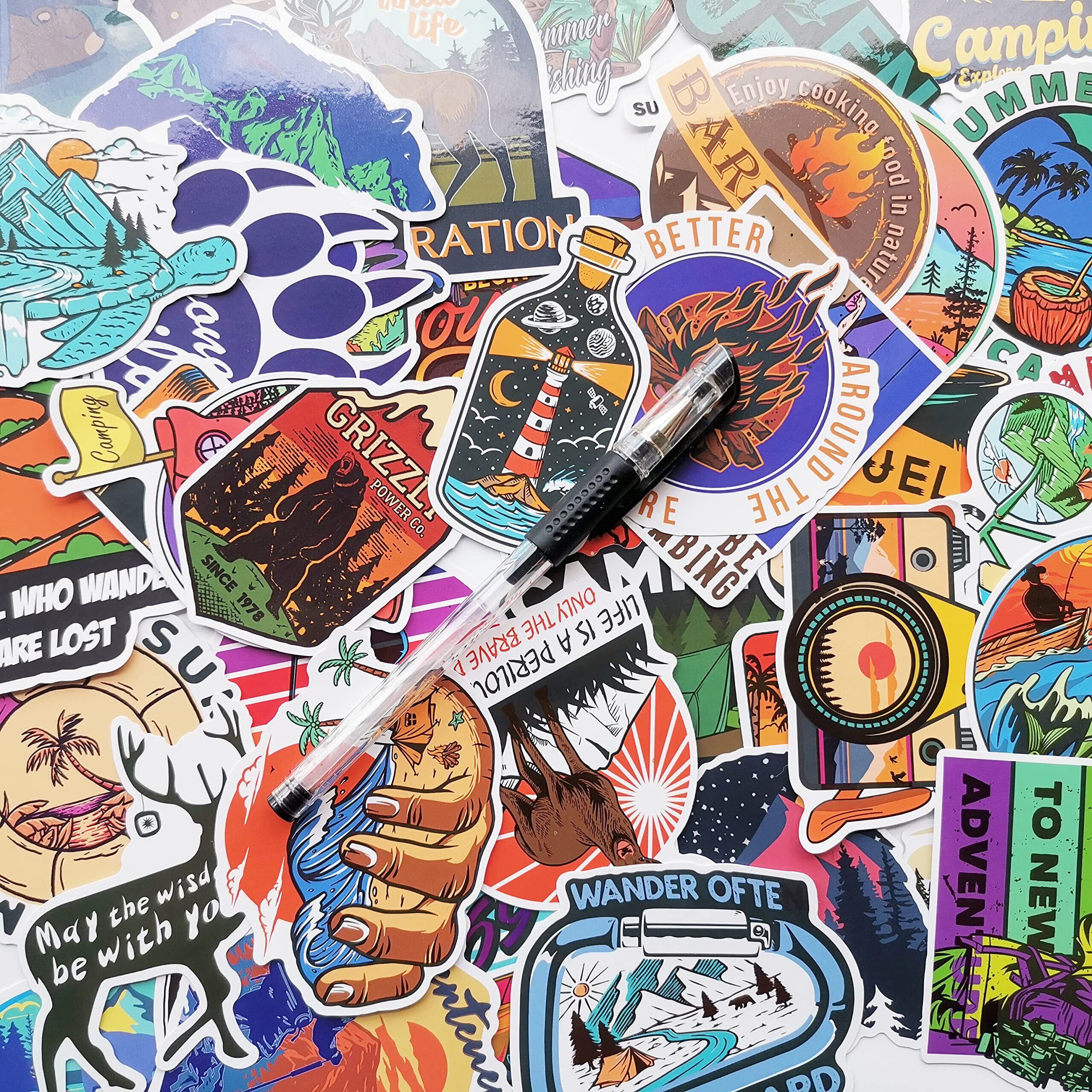 アメリカン ソロキャンプ場 ステッカー 防水アウトドア シール車 キャンプステッカー 登山シール 山登りデカール 50枚