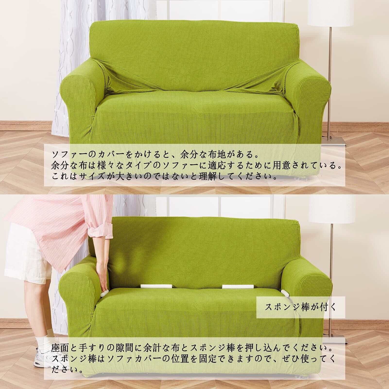 簡単着脱:ストレッチソファーカバーです。生地がグングン伸びて、簡単に着脱でき、肘付きソファーなど様々なソファーに適用です。滑り止め効果あります。女性一人でも簡単に取り付け可能です。