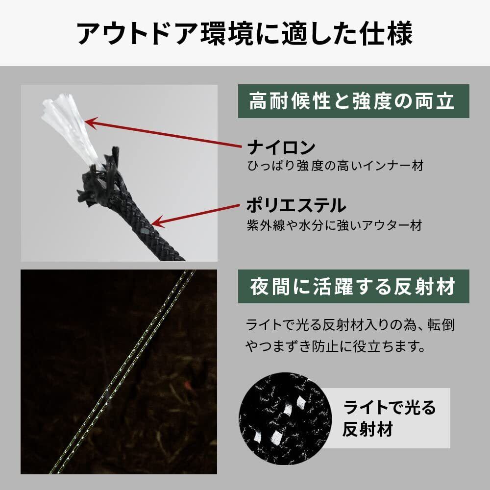 キャンプグリーブ 反射材入りパラコード 3mm/4mm/5mm ガイロープ 30m/50m巻 耐荷重240kg/350kg/420kg 自在金具12個付 継ぎ目なしノーカット テントロープ キャンプ (50, アーミーグリーン/3mm)