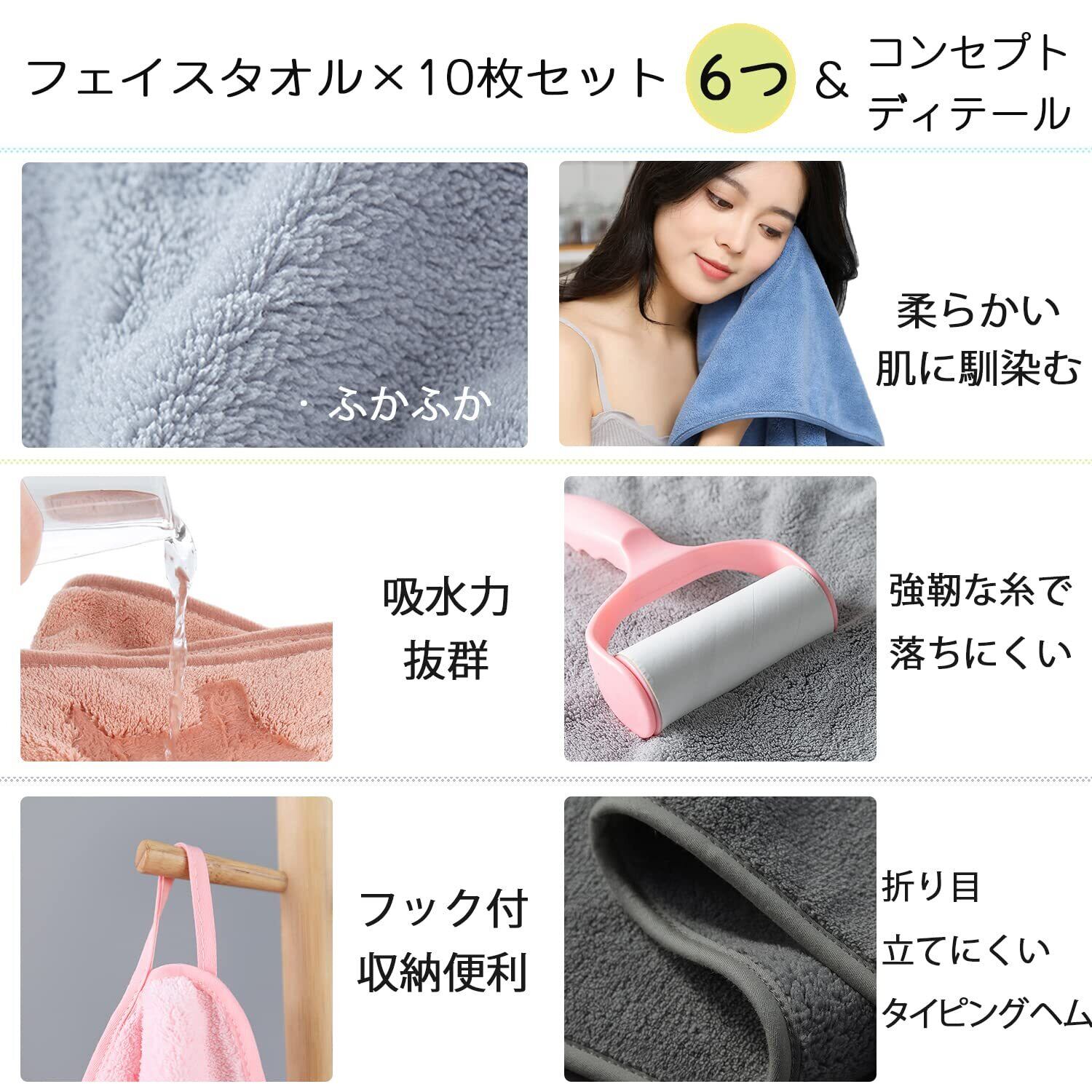 フェイスタオル マイクロファイバー 10枚セット 約35X75cm 柔らかい ふわふわ 高速 吸水 速乾 通気 人気 家庭/業務用 (スカイブルー)