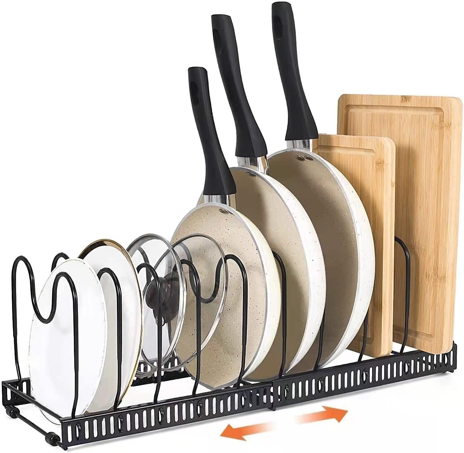 【2022最新】Liebbon【伸縮式】フライパン収納ラック 10仕切り付き|シンク下・コンロ下・引き出し対応|鍋スタンド 鍋蓋・まな板・フライパン立てて収納|キッチン下収納ラック (伸縮式 ブラック 10本仕切り) | lcsshop