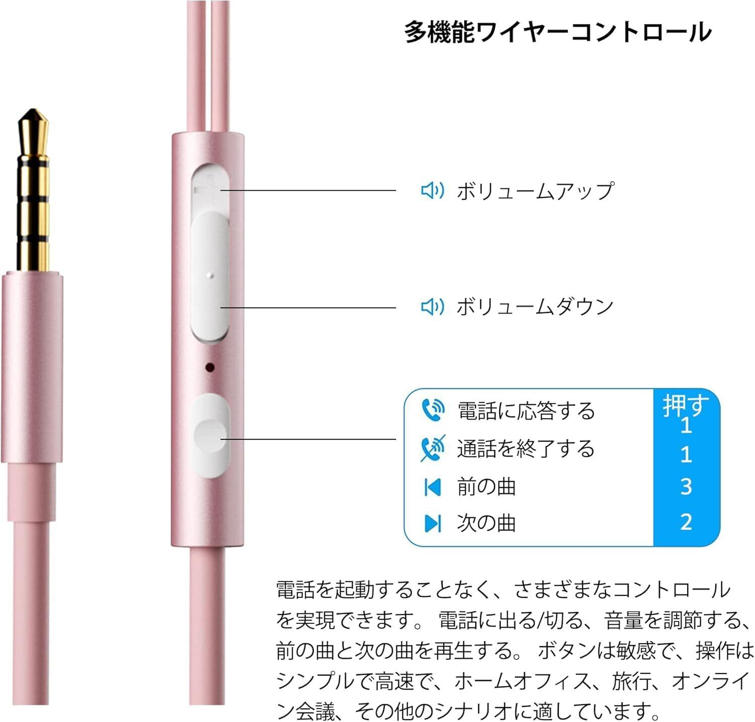 「便捷操控、高品质通话」ワイヤー制御で、電話のロックを解除せずに簡単に操作!イヤホン 有線 通話もステレオ音質もクリアで高品質!電話を切る/応答する、音量調整、曲の切り替え、通話サポートまで。購入を検討中の方、図3をご参照ください!