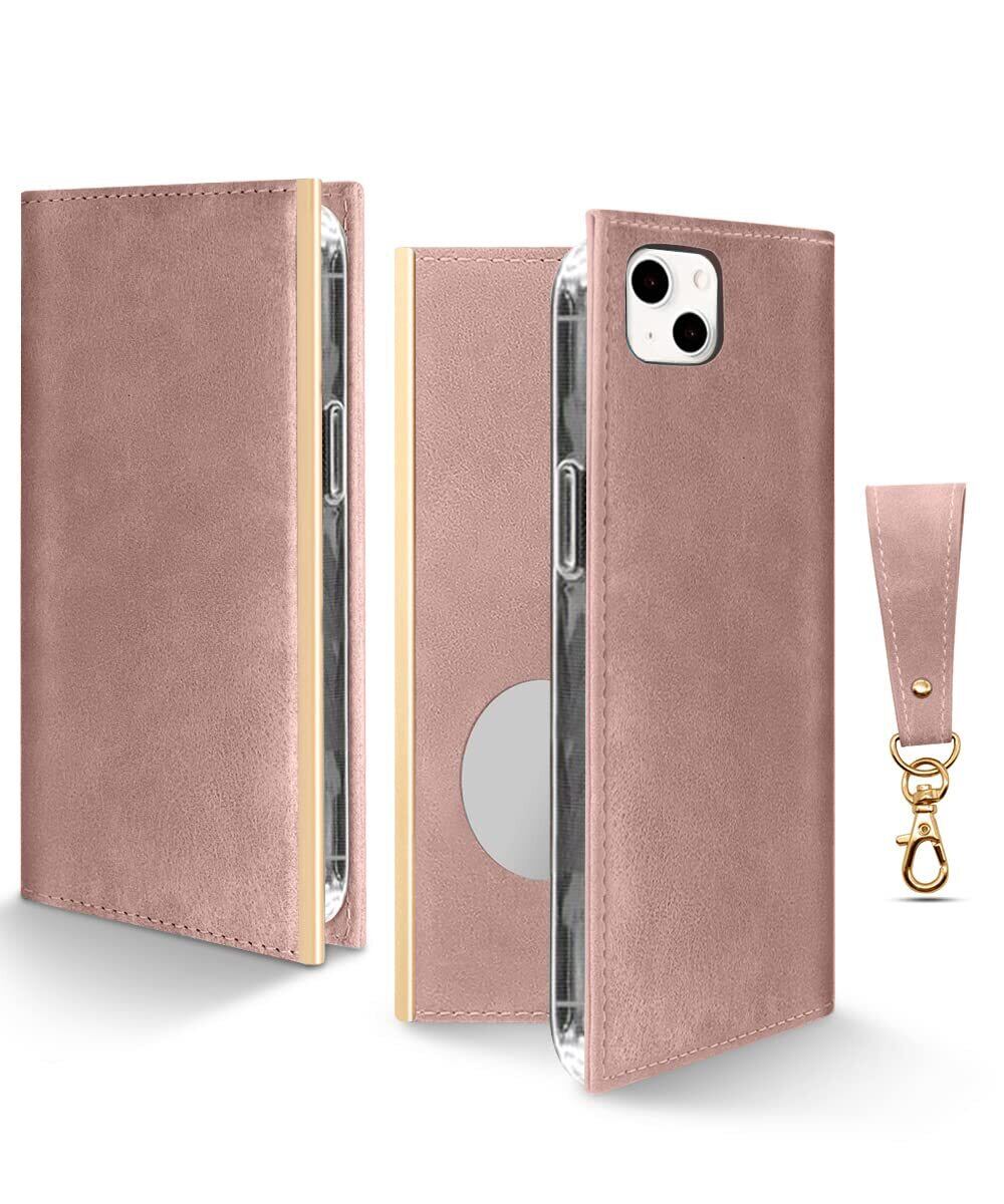OCTERR iPhone 13 mini ケース 手帳型 手帳 鏡付き マグネット式 スマホケース 財布型 アイフォン13ミニカバー カードポケット スタンド機能 携帯ケース ダイアリーケース PUレザー 女性 耐衝撃 全面保護 ファッション おしゃれ 美しい アプリコットピンク