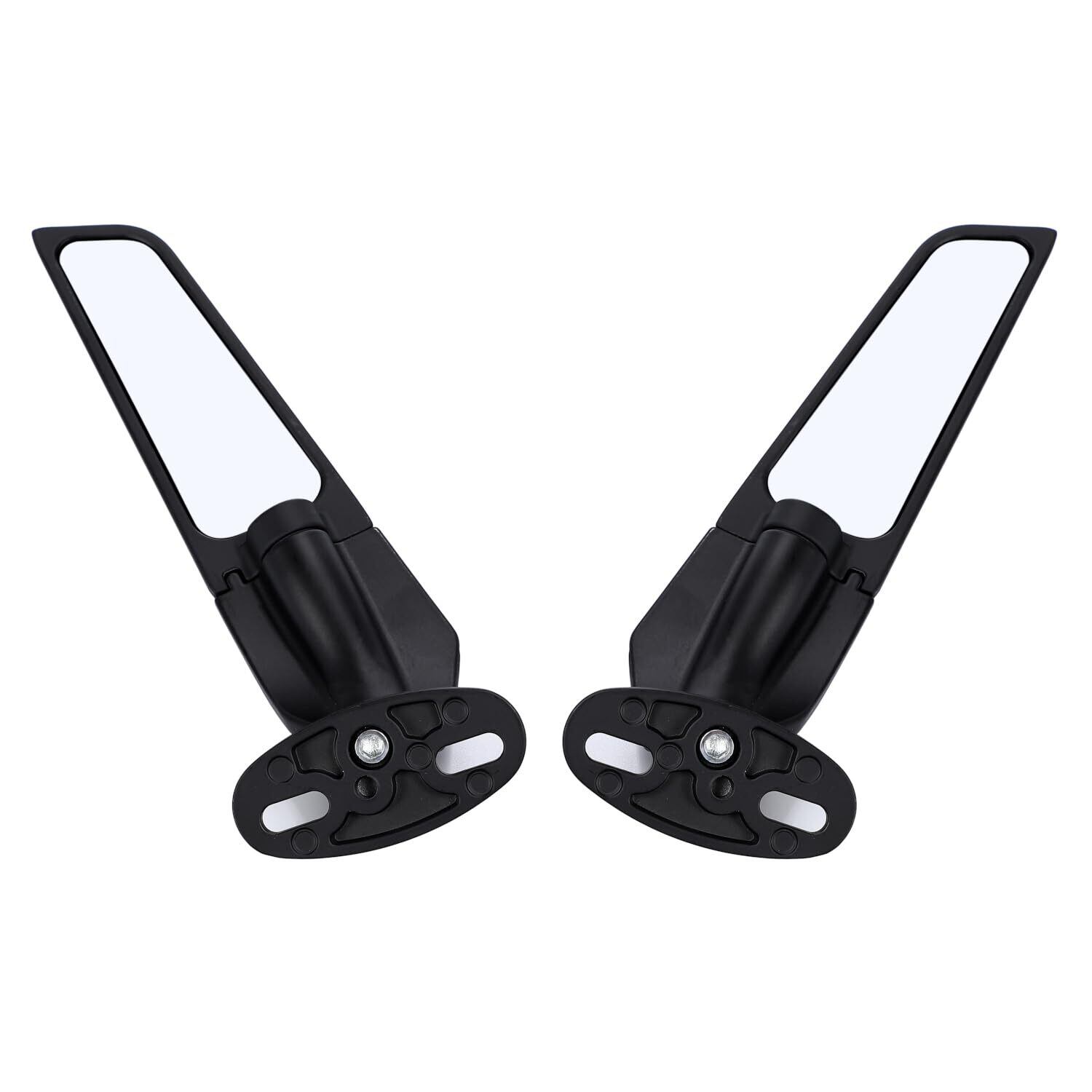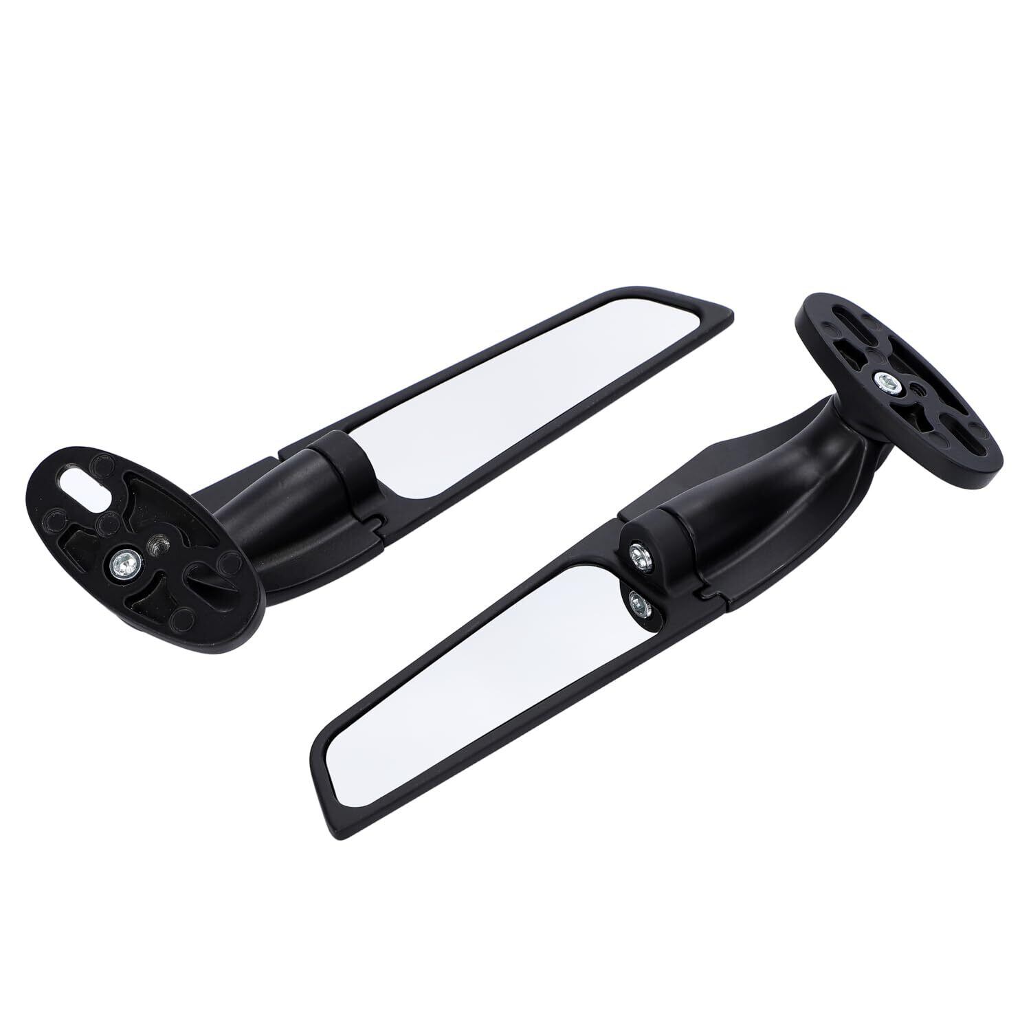 左右のセットのウイング型のバイク用、カウリングミラー。汎用品として設計されており、幅広い車種に簡単に合わせることができるように、スリムな翼型デザインが採用されています。