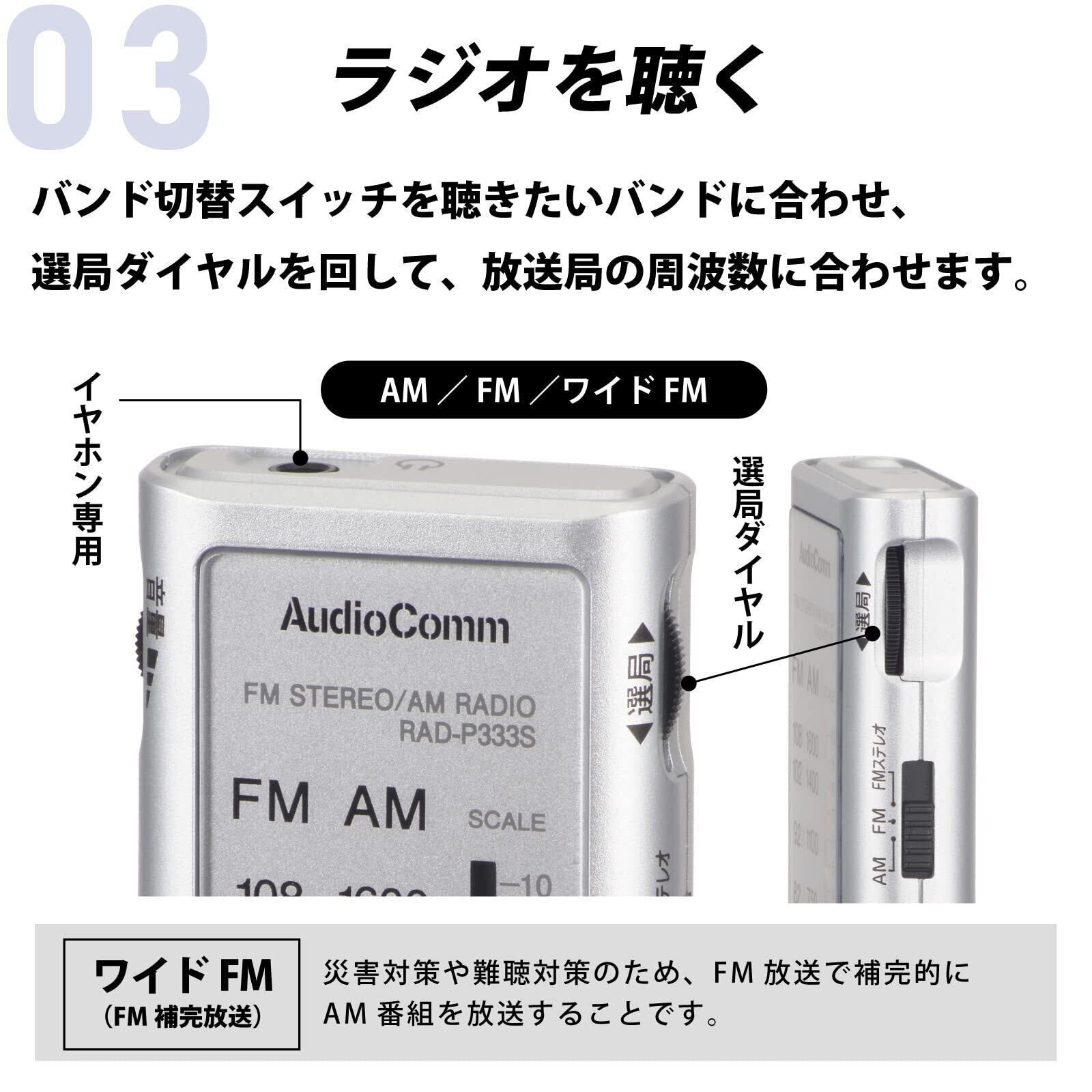 オーム電機 ラジオ 小型 ポータブルラジオ ポケットラジオ AudioComm ライターサイズラジオ イヤホン専用 シルバー RAD-P333S-S 03-0968 OHM
