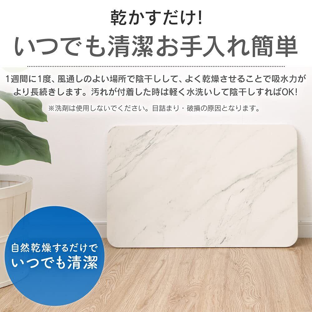 吸水吸湿に優れた珪藻土が、お風呂上がりの水分をしっかり吸収。乾いたあとはサラサラ。