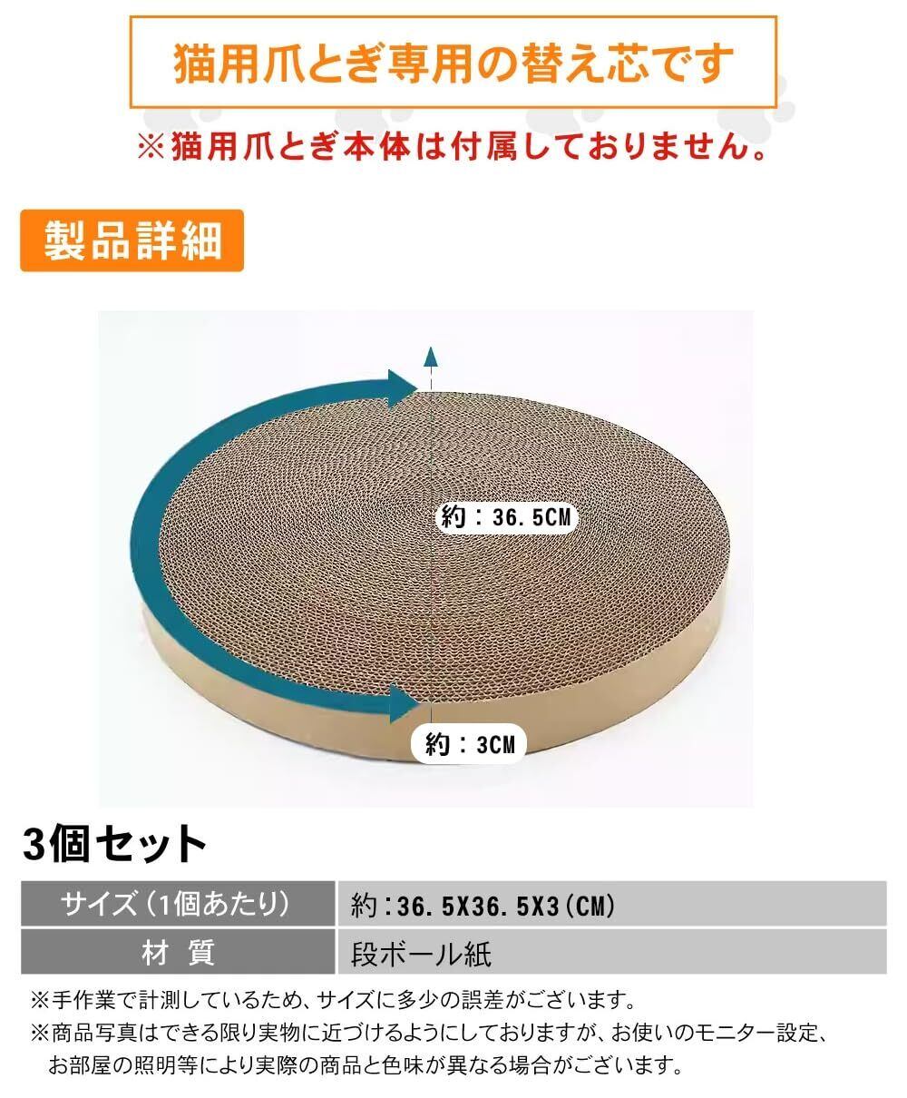 【天然接着剤使用】 Yuni Muni 猫 爪研ぎ つめとぎ 【両面使用 天然接着 段ボール 可愛い】 爪とぎ 段ボール (交换用3個セット36.5cm)