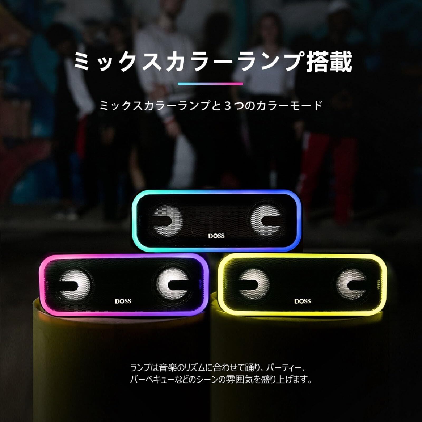 DOSS SoundBox Pro+ Bluetoothスピーカー 24W 重低音 ワイヤレス ポータブル 小型 ブルートゥース スピーカー【15時間再生/ワイヤレスステレオ対応/ライティング機能/IPX6 防水/マイク内蔵/Aux-in/TFカード対応/お風呂 アオトドア適用】(ブラック) | lcsshop