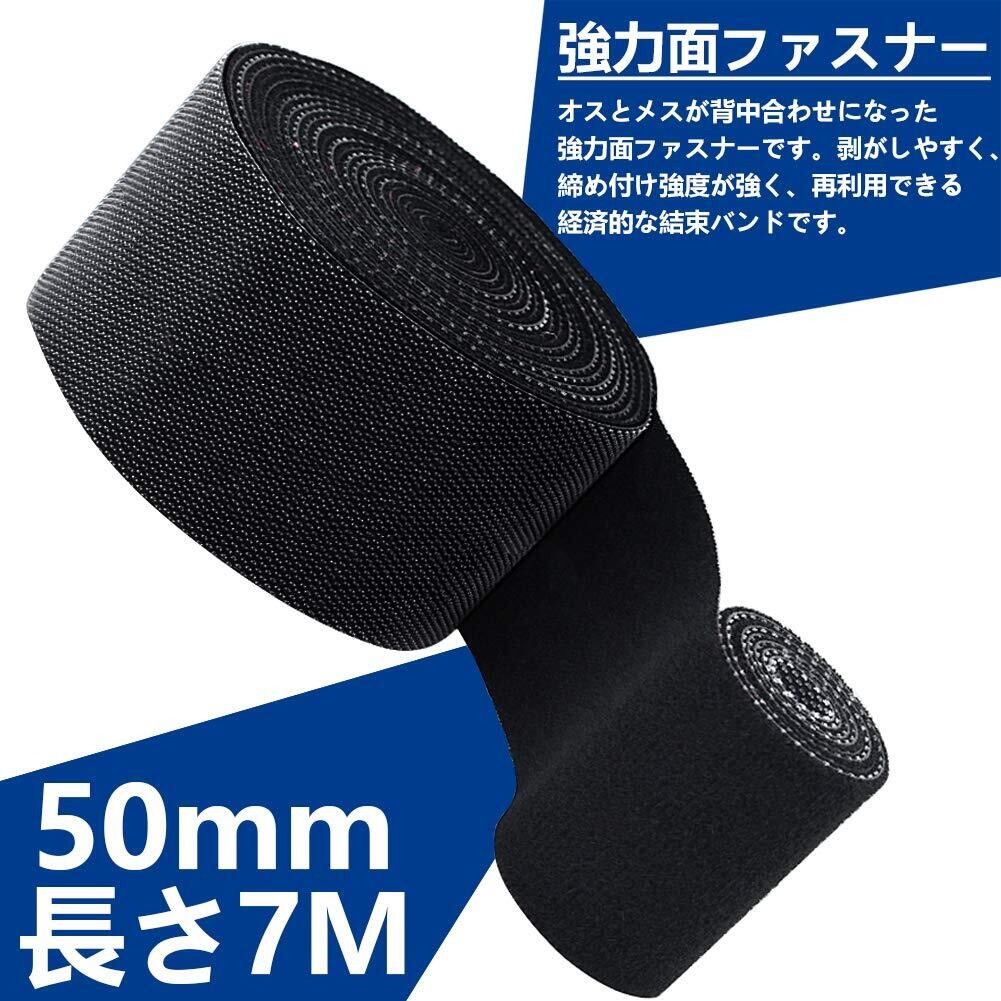 SHICHANG 結束バンド マジックバンド 結束テープ50mmx7m幅広 黒 粘着ブラック自由にカット 面ファスナー 収納用テープ