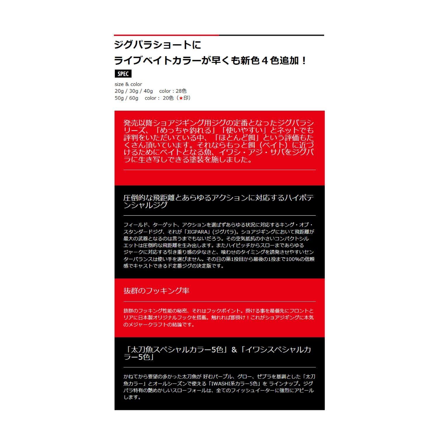 メジャークラフト メタルジグ ジグパラ ショート ライブベイトカラー ルアー JPS