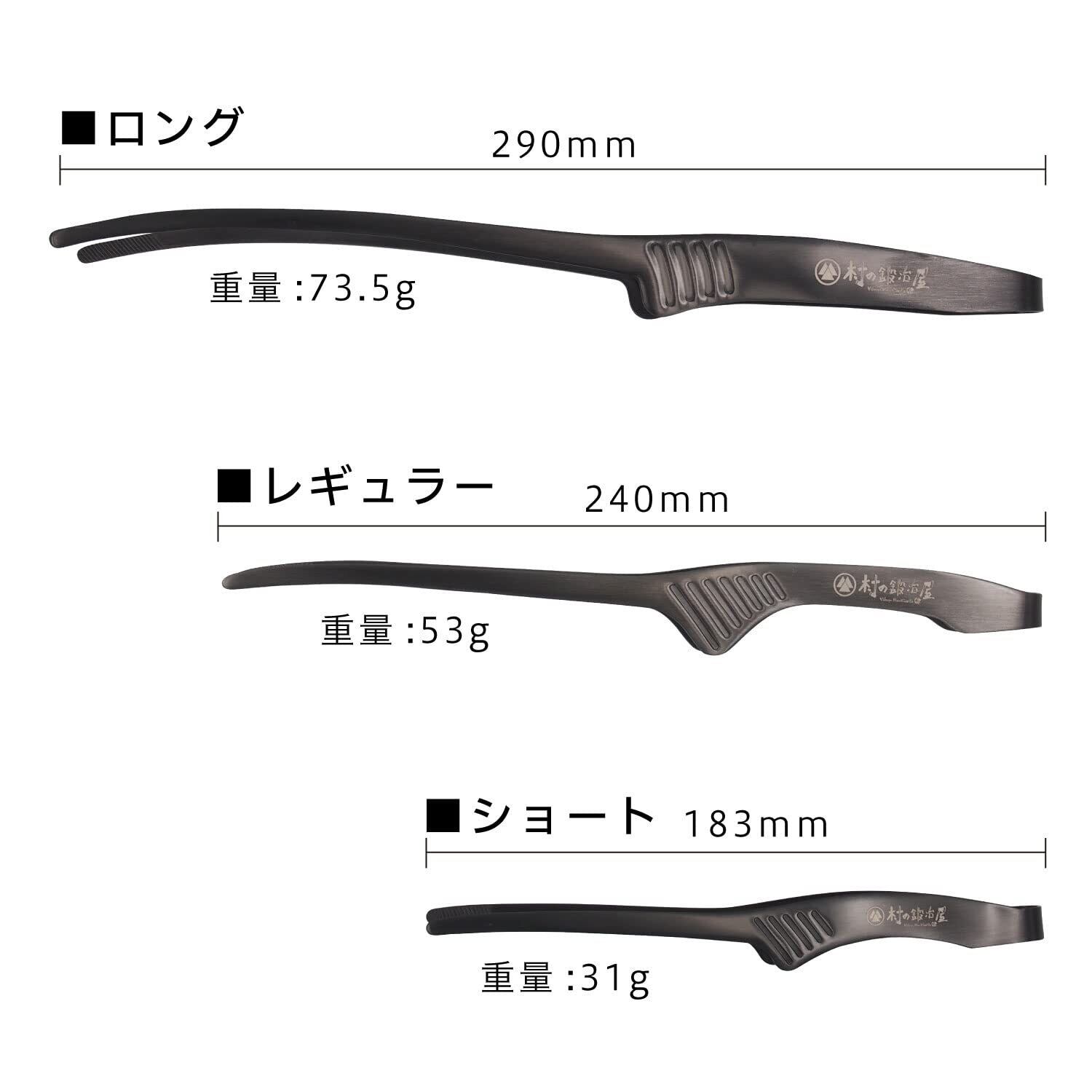 ■ロング・・・焚火で特に活躍します。 火と十分距離を取れる長さで、薪や炭も掴みやすいです。お肉がくっついていても1枚だけを綺麗に剥がせます。