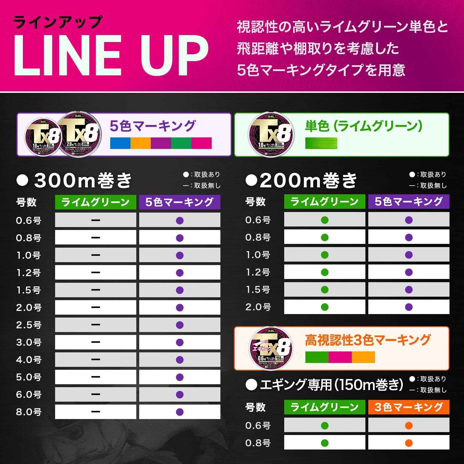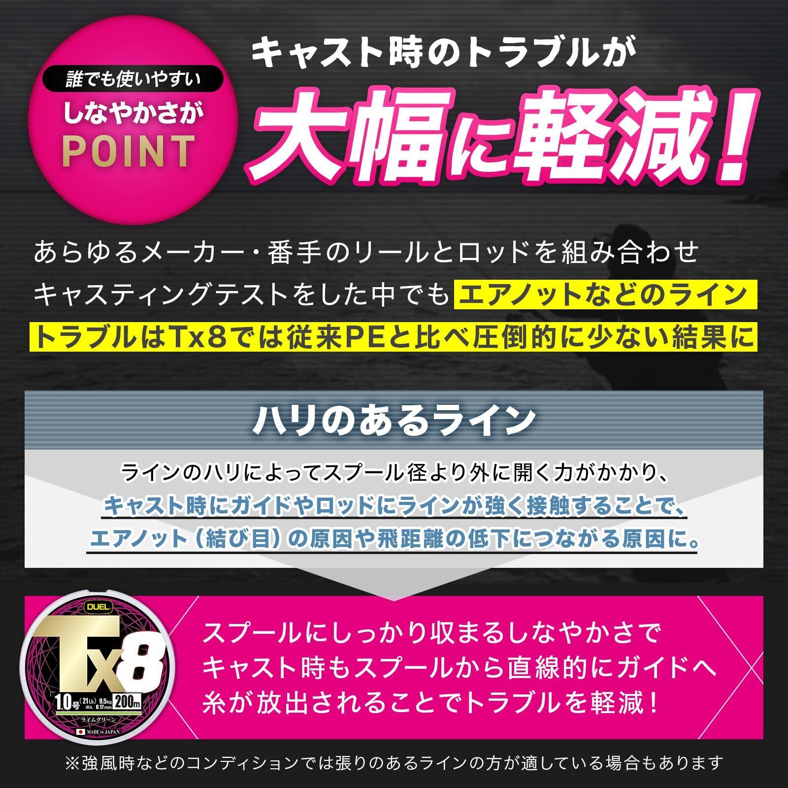 DUEL (デュエル) PEライン 釣り糸 Tx8【 ライン 釣りライン 釣具 高強度 高感度 強さ長持ち】0.6号~8.0号 5色マーキング/ライムグリーン