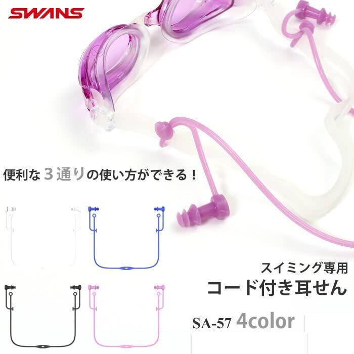 SWANS(スワンズ) スイミング用 耳栓 SA-57 W ホワイト 大人用 コード付き シリコーン