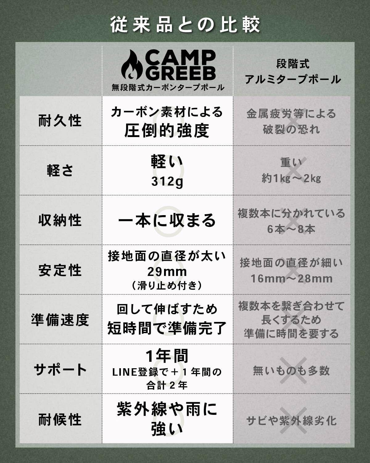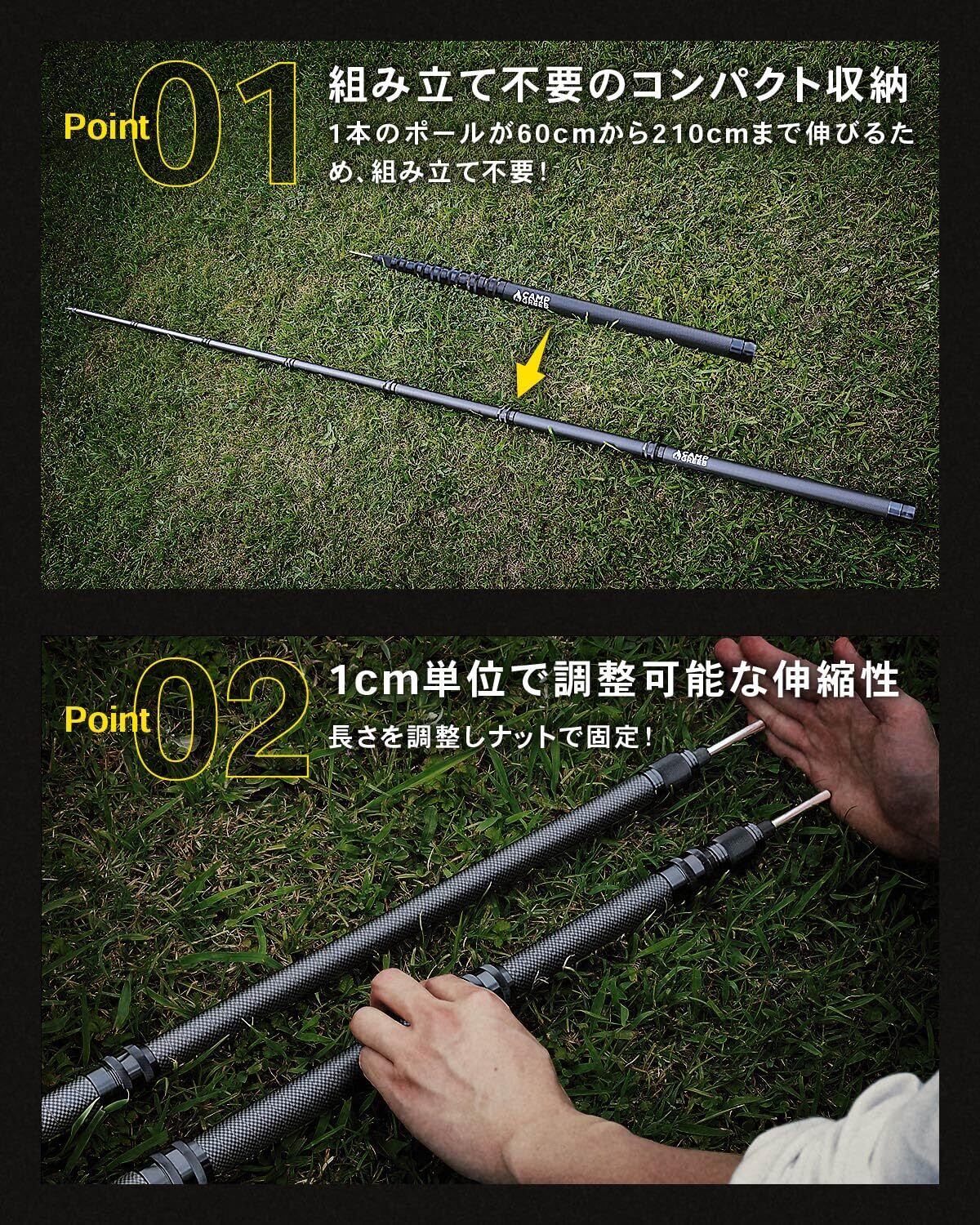 キャンプグリーブ タープポール カーボン製 テントポール 伸縮ポール 【日本人キャンパー監修説明書付】 (無段階調節)
