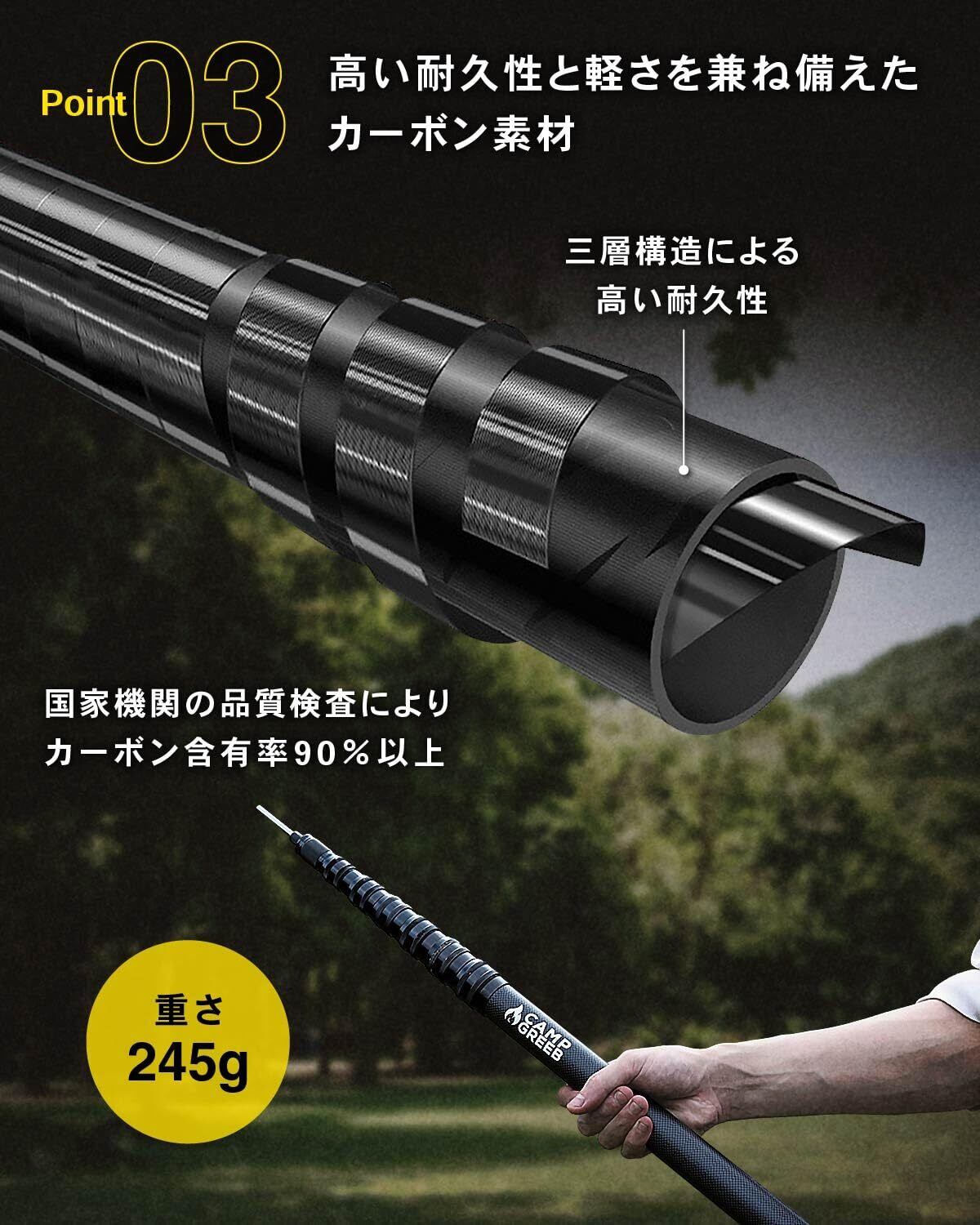キャンプグリーブ タープポール カーボン製 テントポール 伸縮ポール 【日本人キャンパー監修説明書付】 (無段階調節)